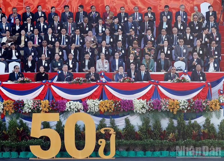 Lãnh đạo Đảng, Nhà nước Lào, lãnh đạo các nước và bạn bè quốc tế tham dự buổi lễ. (Ảnh: TRỊNH DŨNG)