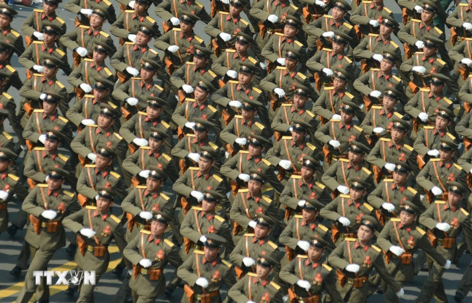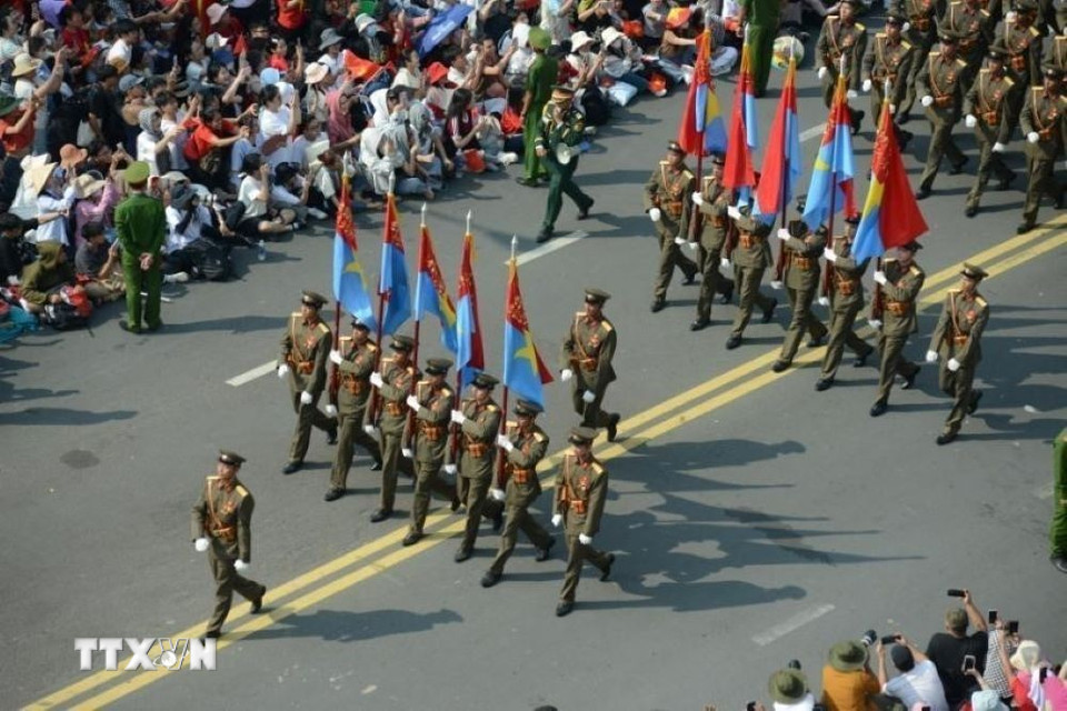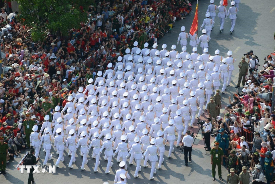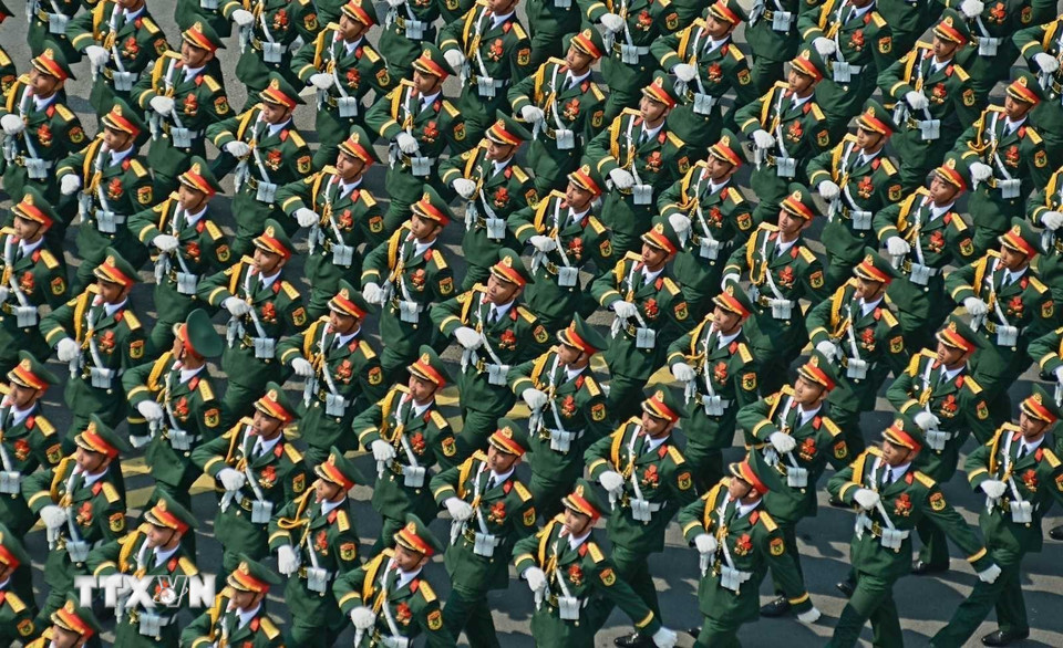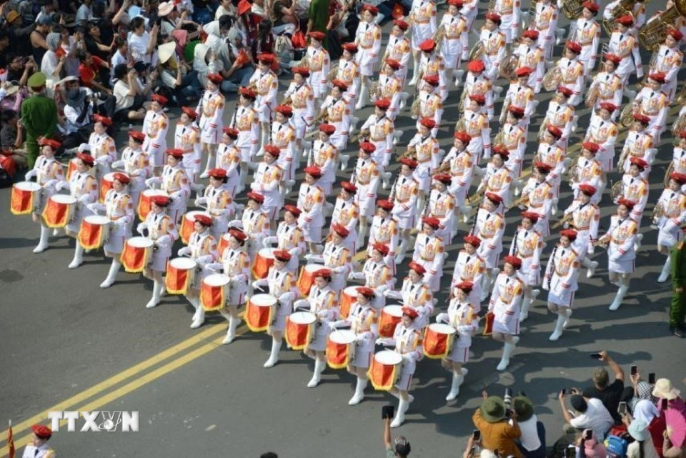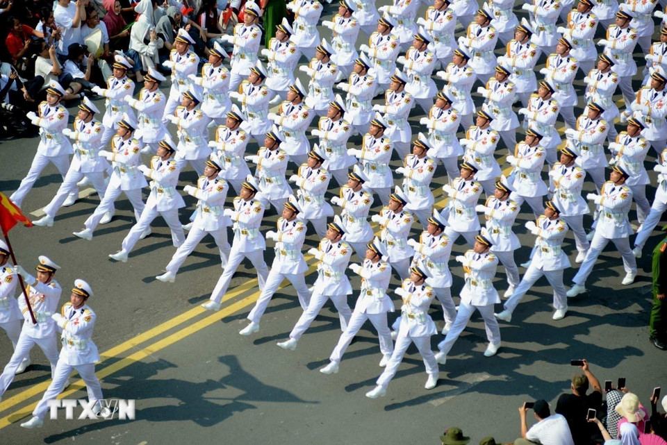 Màn diễu binh ấn tượng của các lực lượng quân đội, công an trên đường phố. (Ảnh: TTXVN)