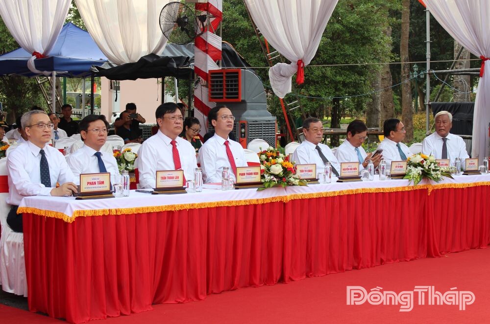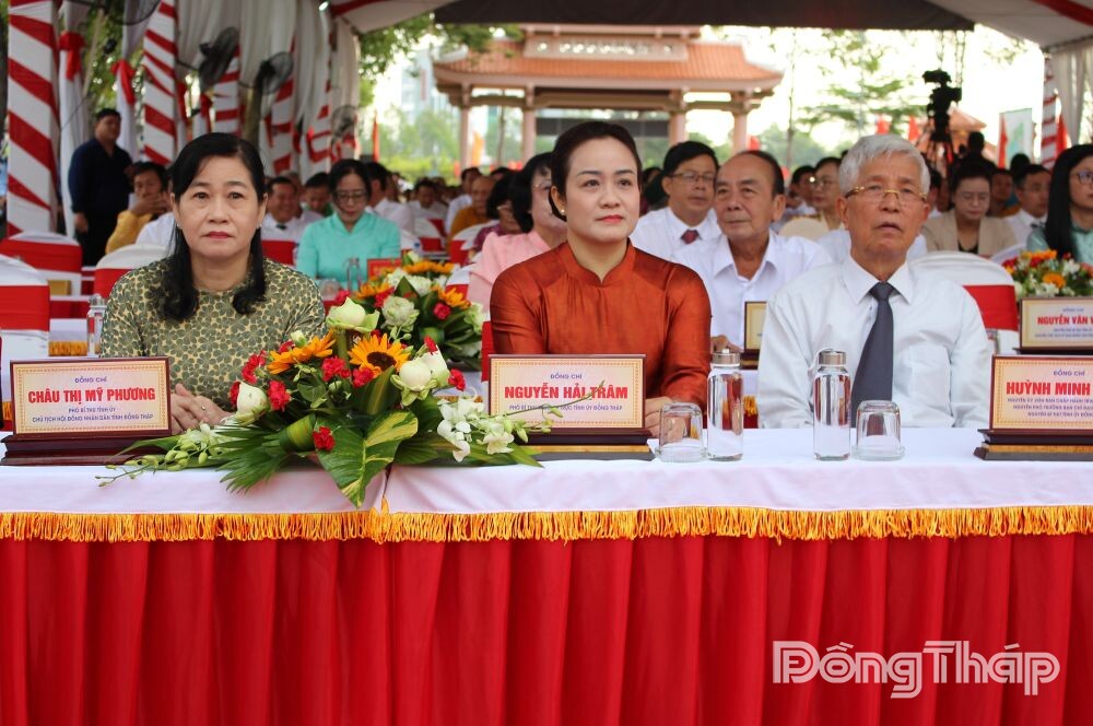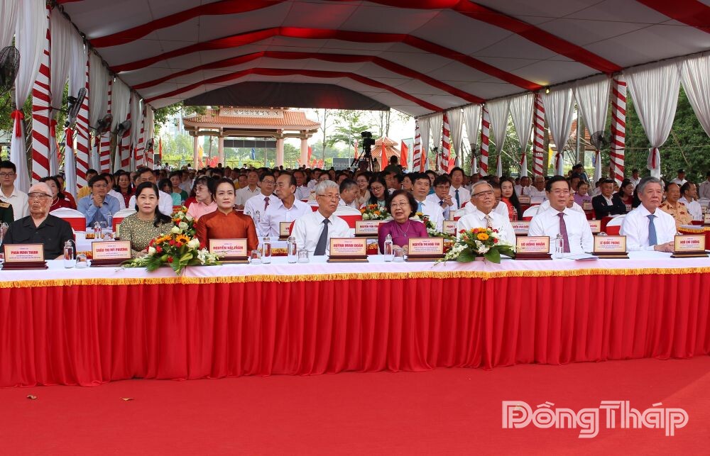 Tham dự buổi Lễ có các đồng chí: Trần Thanh Lâm, Phó Trưởng ban Ban Tuyên giáo và Dân vận Trung ương; Phan Tâm, Thứ trưởng Bộ Văn hóa, Thể thao và Du lịch; Ngô Chí Cường, Ủy viên Trung ương Đảng, Bí thư Tỉnh ủy, Trưởng Đoàn đại biểu Quốc hội tỉnh Đồng Tháp; Lê Quốc Phong, Ủy viên Trung ương Đảng, Phó Bí thư Thường trực Thành ủy TP. Hồ Chí Minh; Nguyễn Hải Trâm, Phó Bí thư Thường trực Tỉnh ủy Đồng Tháp; Châu Thị Mỹ Phương, Phó Bí thư Tỉnh ủy, Chủ tịch HĐND tỉnh Đồng Tháp; Phạm Thành Ngại, Phó Bí thư Tỉnh ủy, Chủ tịch UBND tỉnh Đồng Tháp; nguyên Ủy viên Trung ương Đảng, nguyên lãnh đạo các ban, bộ, ngành Trung ương; các Mẹ Việt Nam Anh hùng, lão thành cách mạng; lãnh đạo các tỉnh, thành phố; lãnh đạo tỉnh, nguyên lãnh đạo tỉnh Đồng Tháp qua các nhiệm kỳ; dòng họ Nguyễn Sinh...