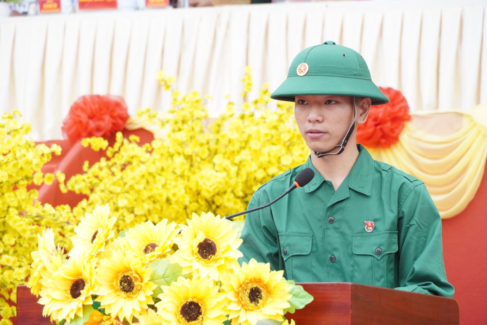 Tân binh Nguyễn Thái học phát biểu cảm nghĩ tại buổi lễ.