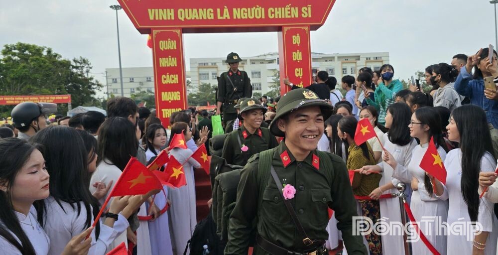 Các tân binh hăng hái lên đường nhập ngũ.
