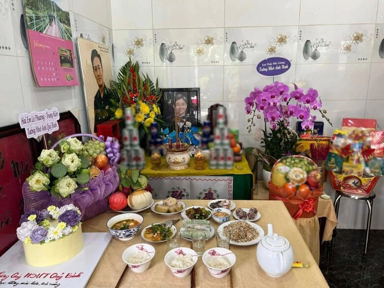 Tại buổi lễ, diễn viên Lê Phương xuất hiện giản dị cùng các đồng nghiệp như Thanh Thức, Hà Vân để dâng hương. Nữ diễn viên mang theo lẵng hoa tươi với dòng chữ "Hai em Lê Phương - Trung Kiên thương nhớ anh Quý Bình" để bày tỏ lòng thành kính trước bàn thờ người anh quá cố.