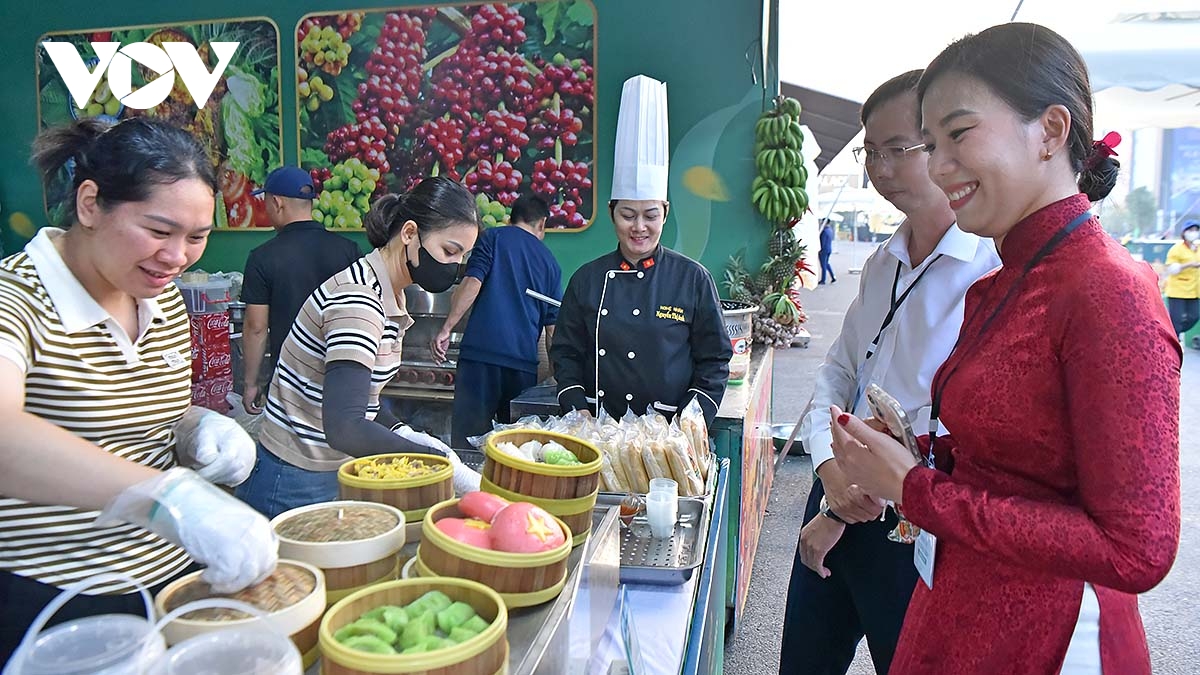 Gian hàng ẩm thực Lâm Đồng giới thiệu đặc sản phở atiso