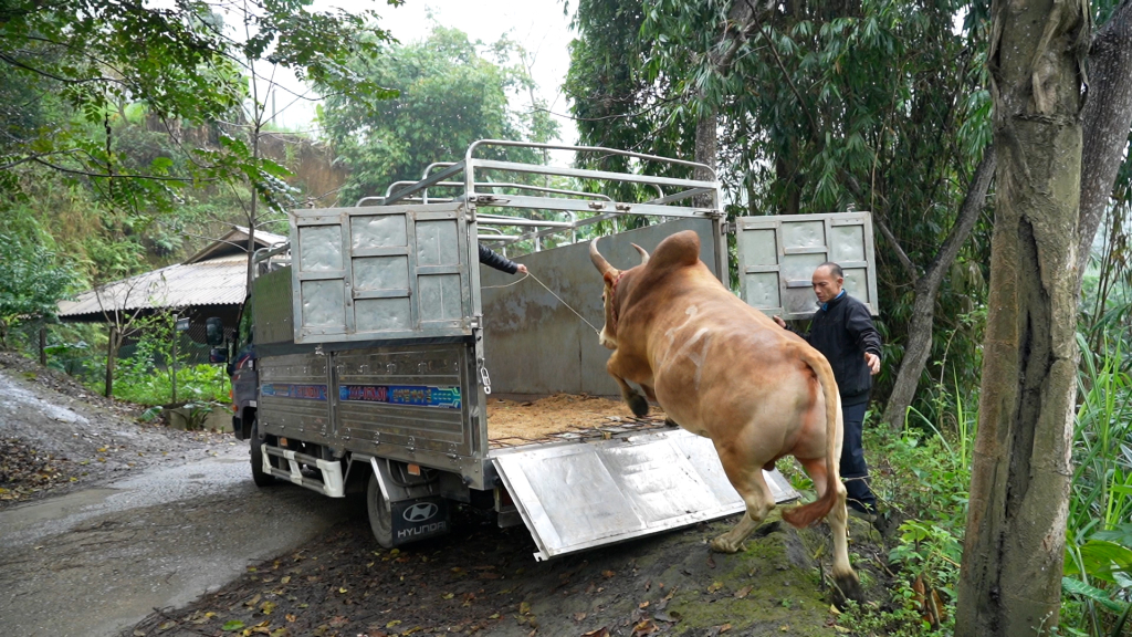 Chú bò mang báo danh 3A của ông Ngô Văn Lý (xóm Nà Thằn) được di chuyển đến bãi chọi.
