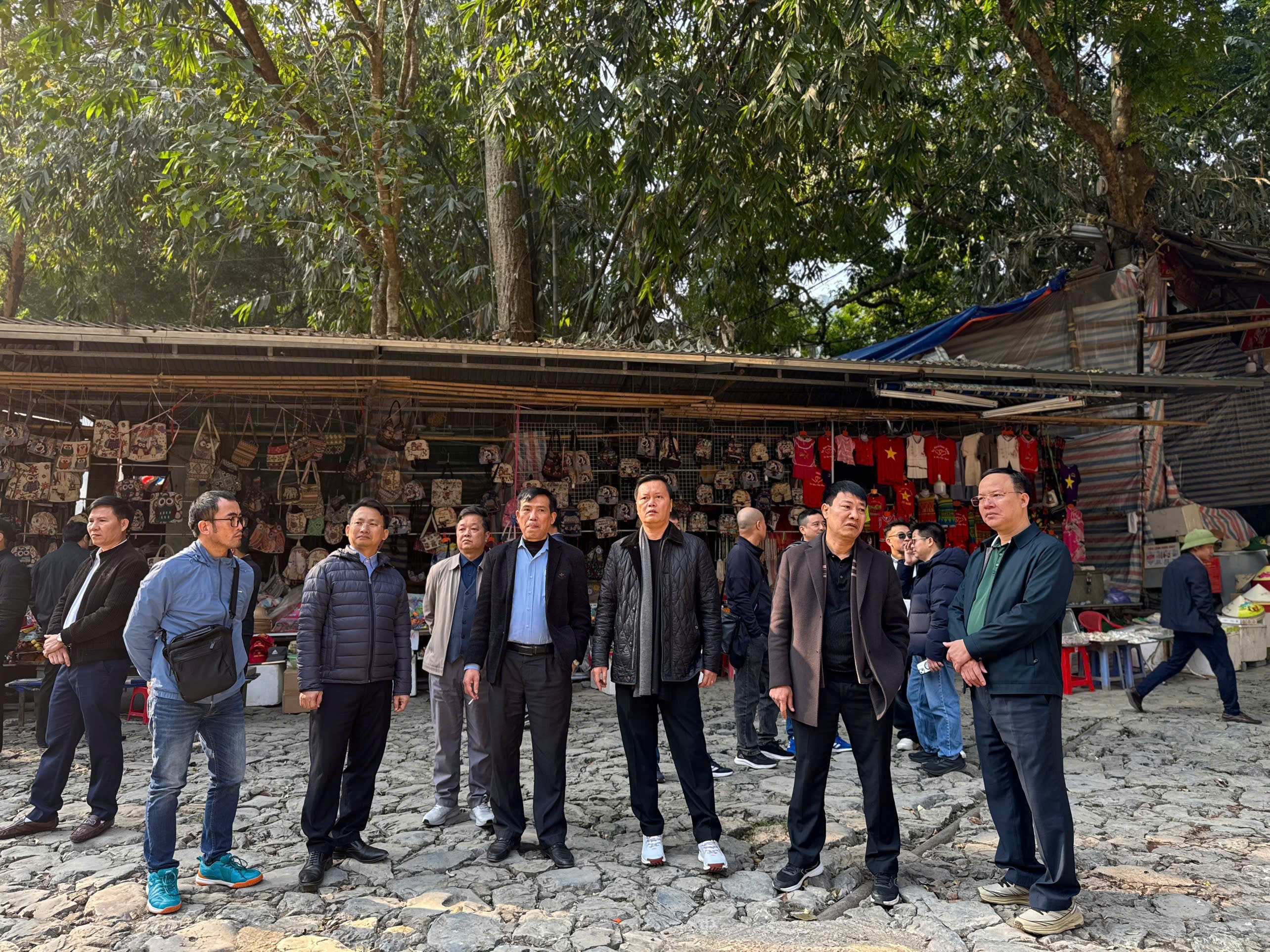 Lãnh đạo xã Hương Sơn và các đại biểu khảo sát công tác chuẩn bị và tổ chức Lễ hội truyền thống du lịch chùa Hương năm 2026