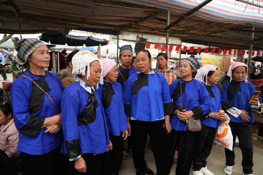 Phụ nữ Nùng Giang hát phong slư tại lễ hội.