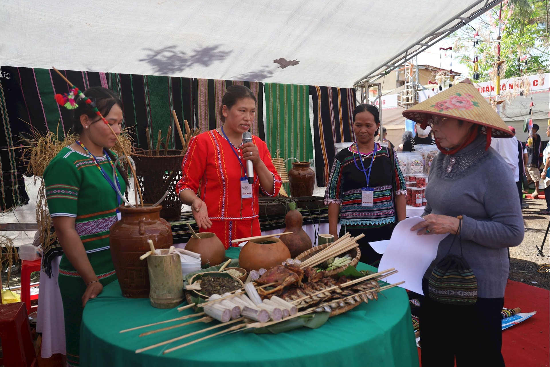 Bên cạnh các phần thi trình diễn, lễ hội còn là dịp để các đội giới thiệu ẩm thực truyền thống, một lát cắt quan trọng của văn hóa. Mỗi đội mang đến một mâm cơm đậm hương vị núi rừng, phản ánh tập quán sinh hoạt và sự khéo léo của người phụ nữ trong gia đình. Khi phần thi kết thúc, các đội gần như sum vầy bên nhau, cùng thưởng thức những món ăn đã được chuẩn bị bằng cả sự trân trọng. Mâm cơm lúc này không còn là phần thi, mà trở thành cầu nối, gắn kết con người bằng sự sẻ chia và tình cảm cộng đồng.