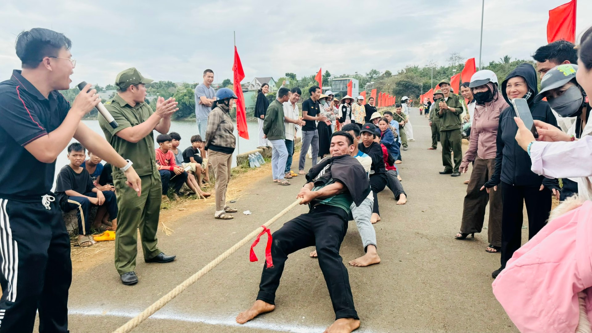 Sau phần lễ, phần hội diễn ra trong không khí vui tươi, đoàn kết với nhiều trò chơi dân gian hấp dẫn như kéo co, nhảy bao bố, bịt mắt bắt vịt, bịt mắt đập heo đất… thu hút đông đảo người dân tham gia và cổ vũ.