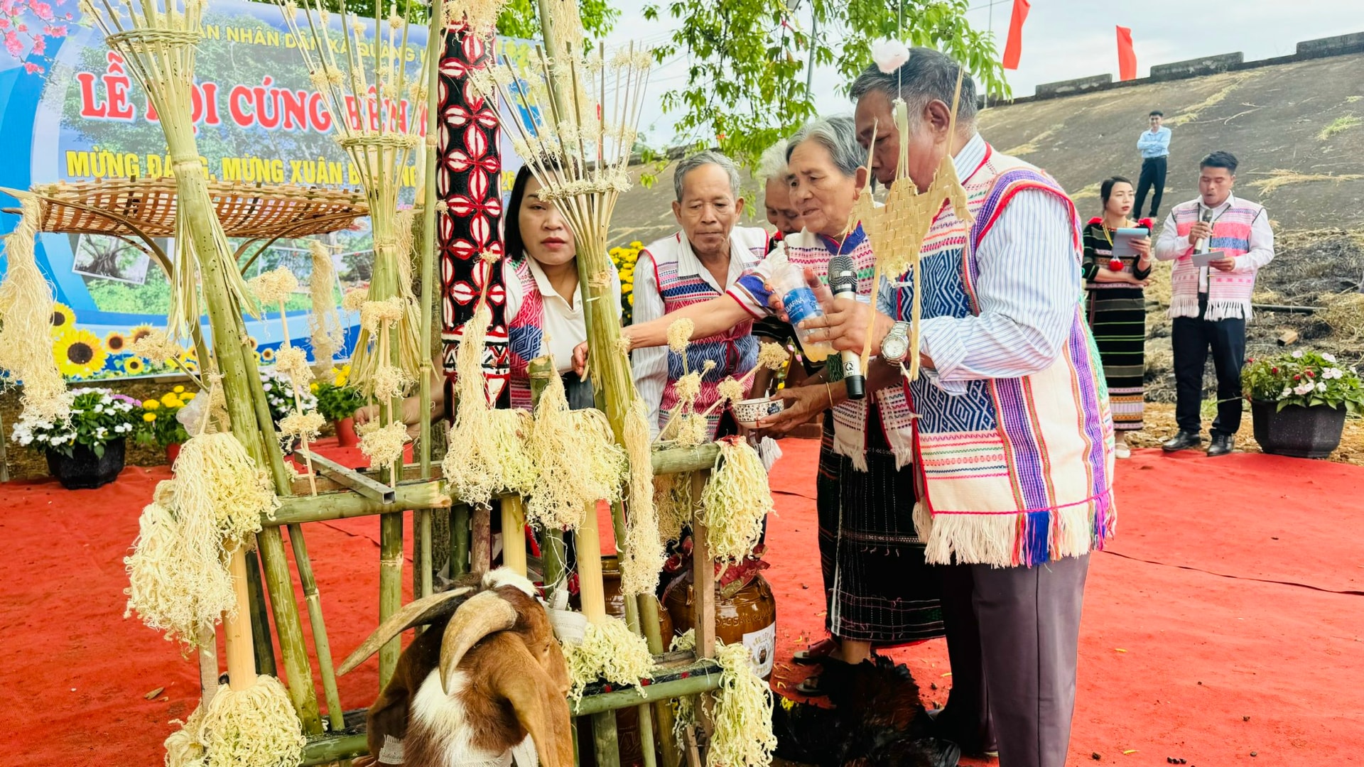 Mở đầu phần lễ là nghi thức rước các vị thần về chứng giám, tiếp đến là nghi lễ cúng bến nước do các già làng bon Phi Mur và bon Ka La Dơng thực hiện.