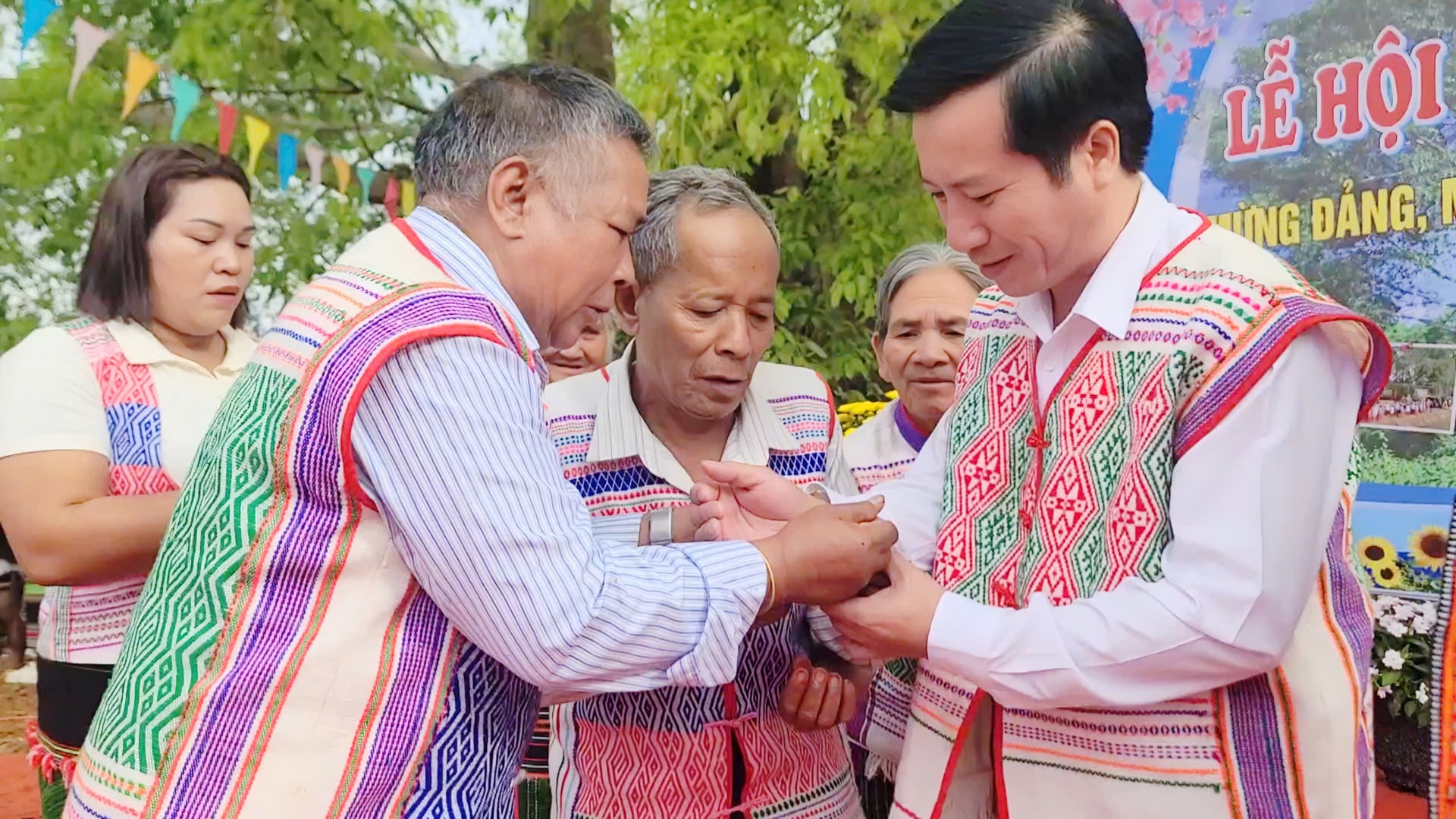 Các già làng trao vòng may mắn cho đại biểu tham dự lễ