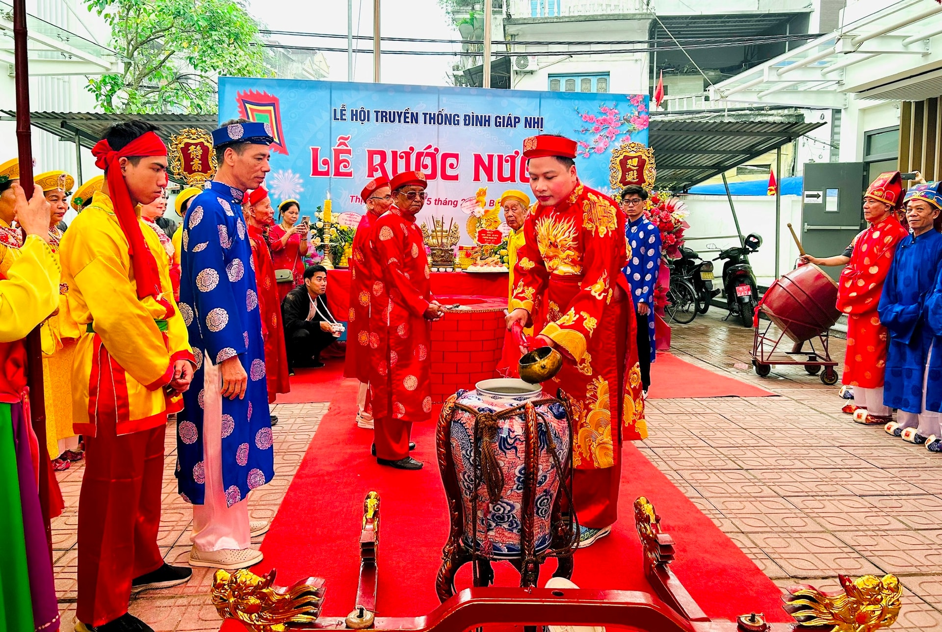 Nghi thức rước nước được lấy từ Đền Hùng về đình Giáp Nhị. Ảnh: Trần Oanh