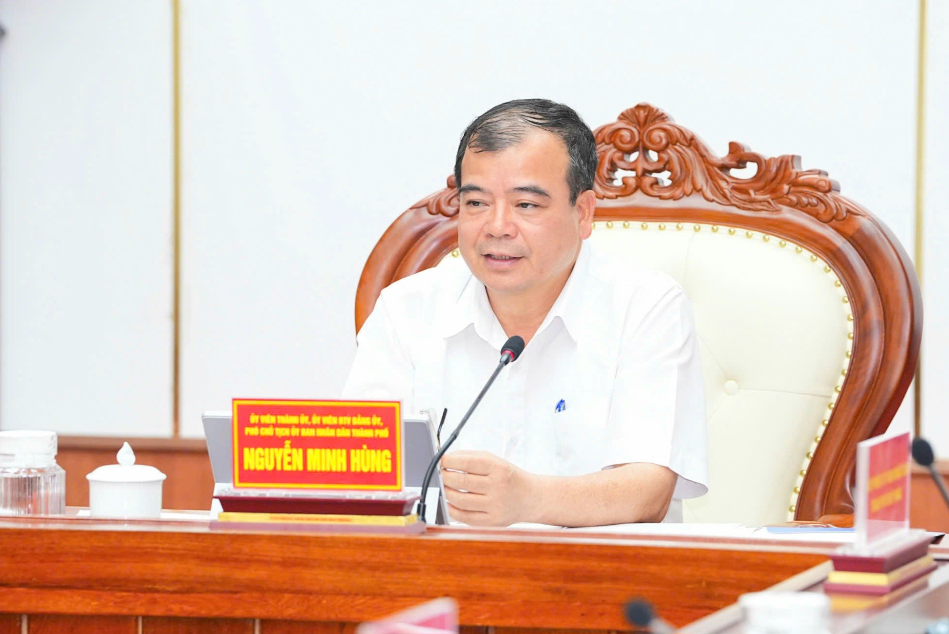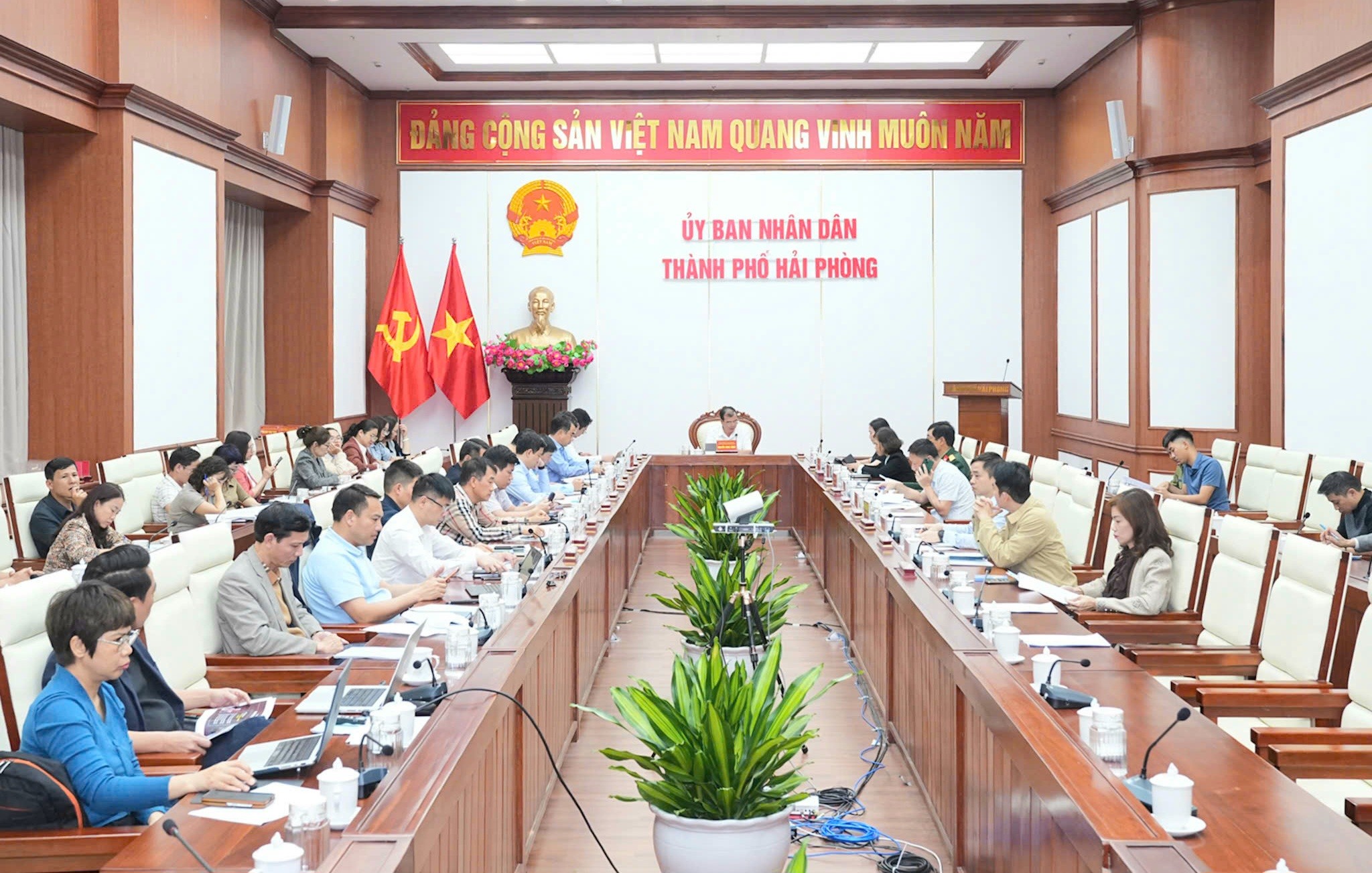 Phó Chủ tịch UBND thành phố Hải Phòng Nguyễn Minh Hùng chủ trì cuộc họp. Ảnh: Đàm Thanh.