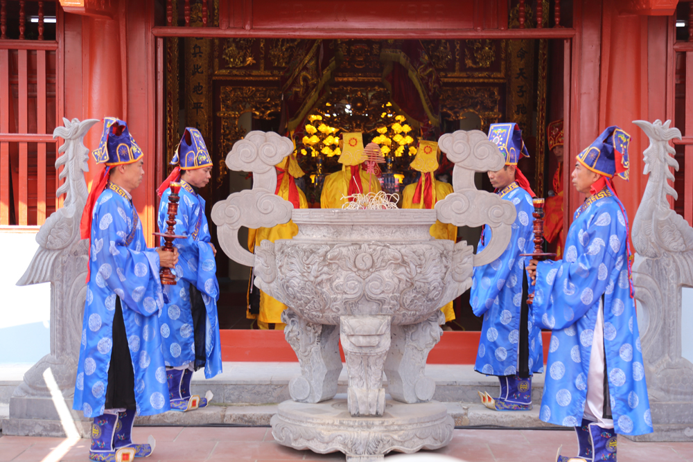 Lễ tế tại đình làng trước khi phần hội được tổ chức.