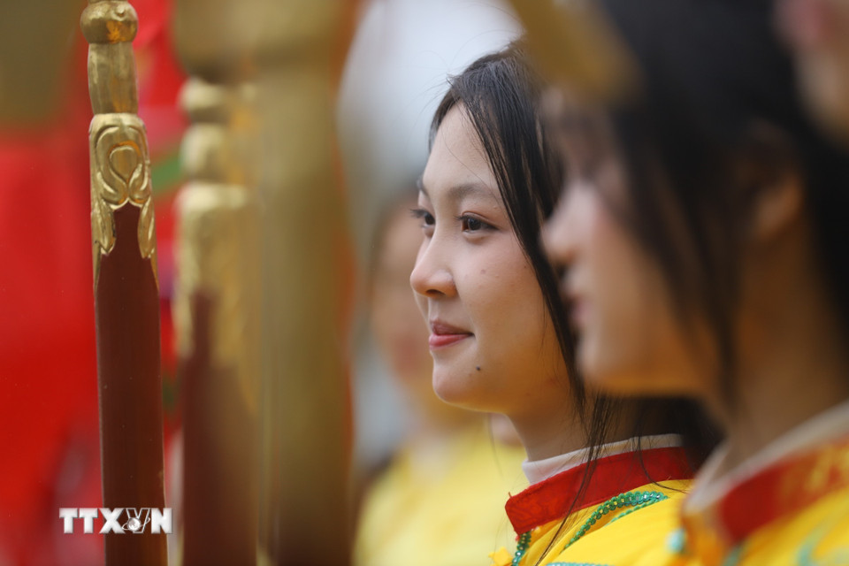 Nghi thức rước kiệu tại lễ hội . (Ảnh: Trọng Đạt/TTXVN)