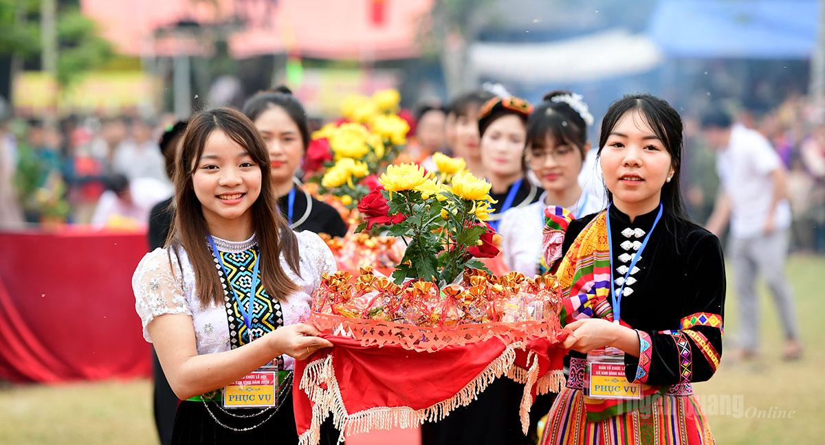 Nam thanh nữ tú xã Kim Bình rước mâm tồng.