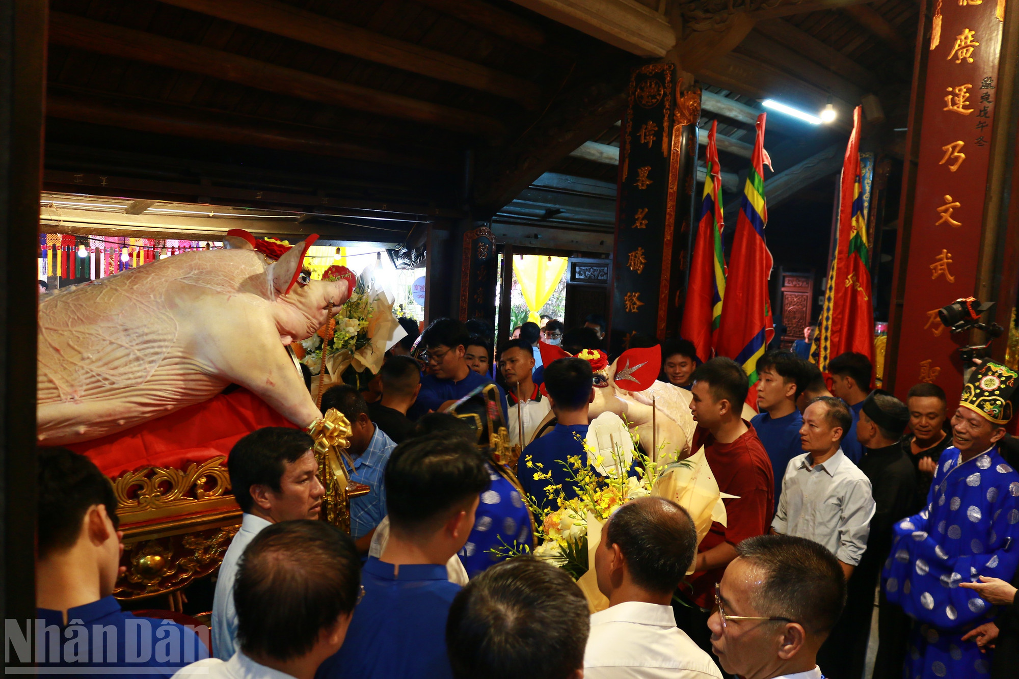 Đám rước, tế lễ được tiến hành trong đêm 13, rạng ngày 14 tháng Giêng. Sau khi dâng thánh, hạ lễ, lợn sẽ được đưa về các nhà “đăng cai” để chia phần cho các hộ lấy may.