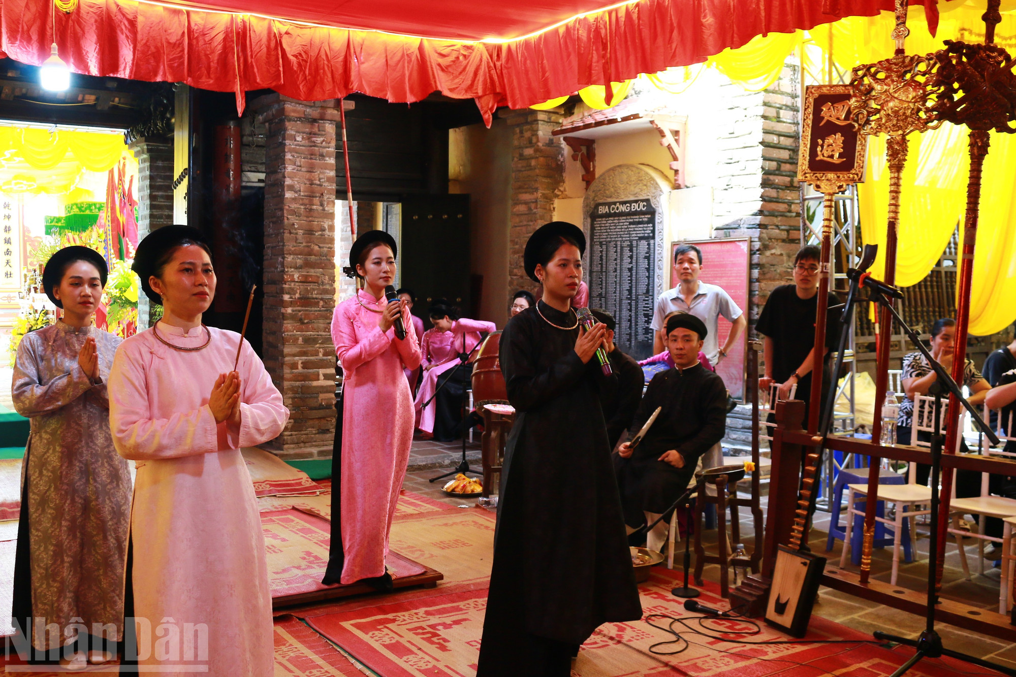 Các ca nương diễn xướng trong không gian linh thiêng của đình làng La Phù.