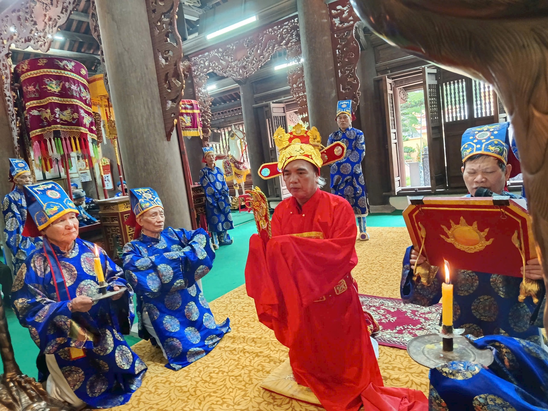 Nghi thức dâng lễ tại đình Phạm Tu . (Ảnh: KIm Xuyến)