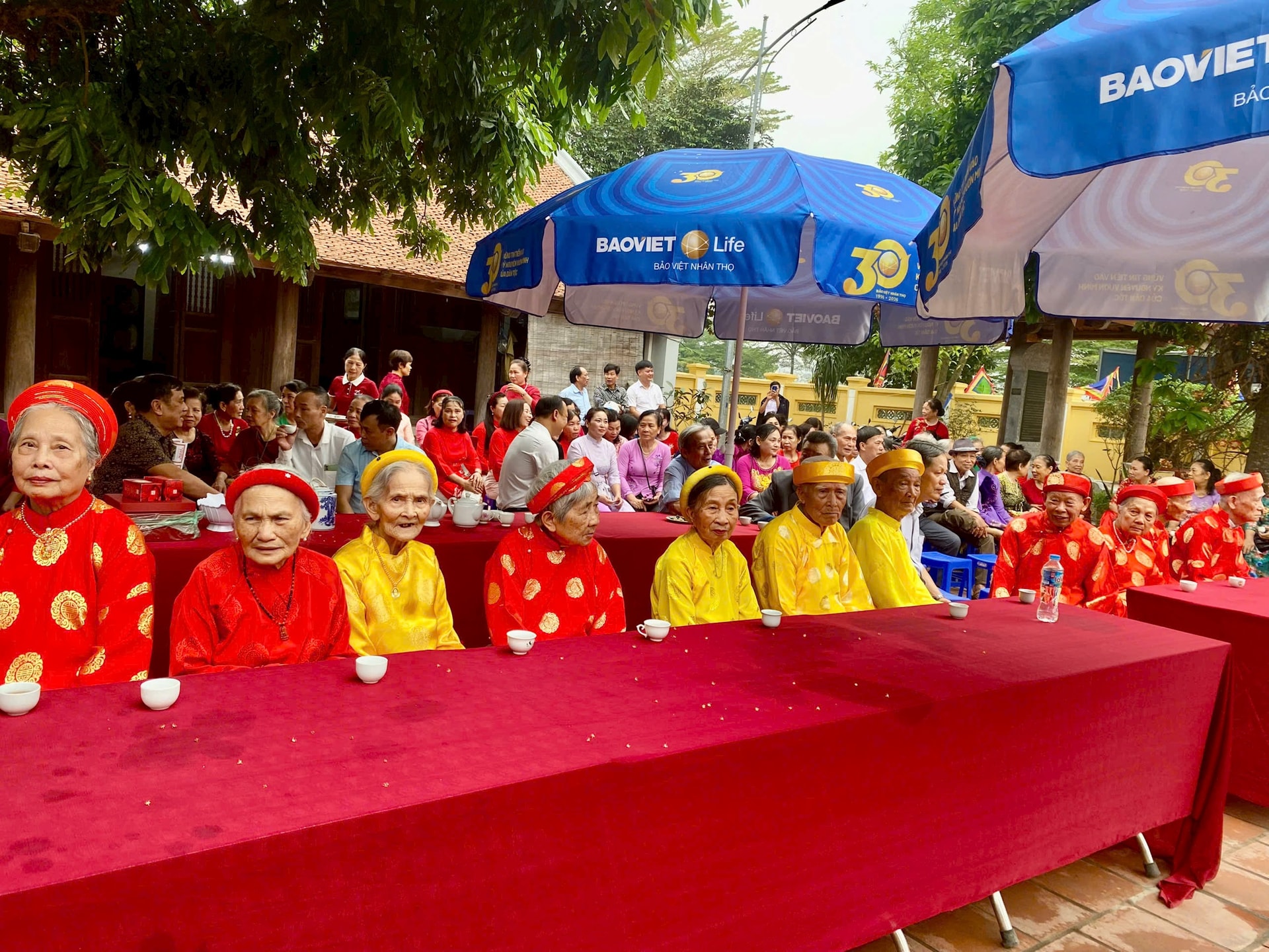 Các bô lão cùng nhân dân trong làng dự khai mạc lễ hội. Ảnh: Kim Xuyến.
