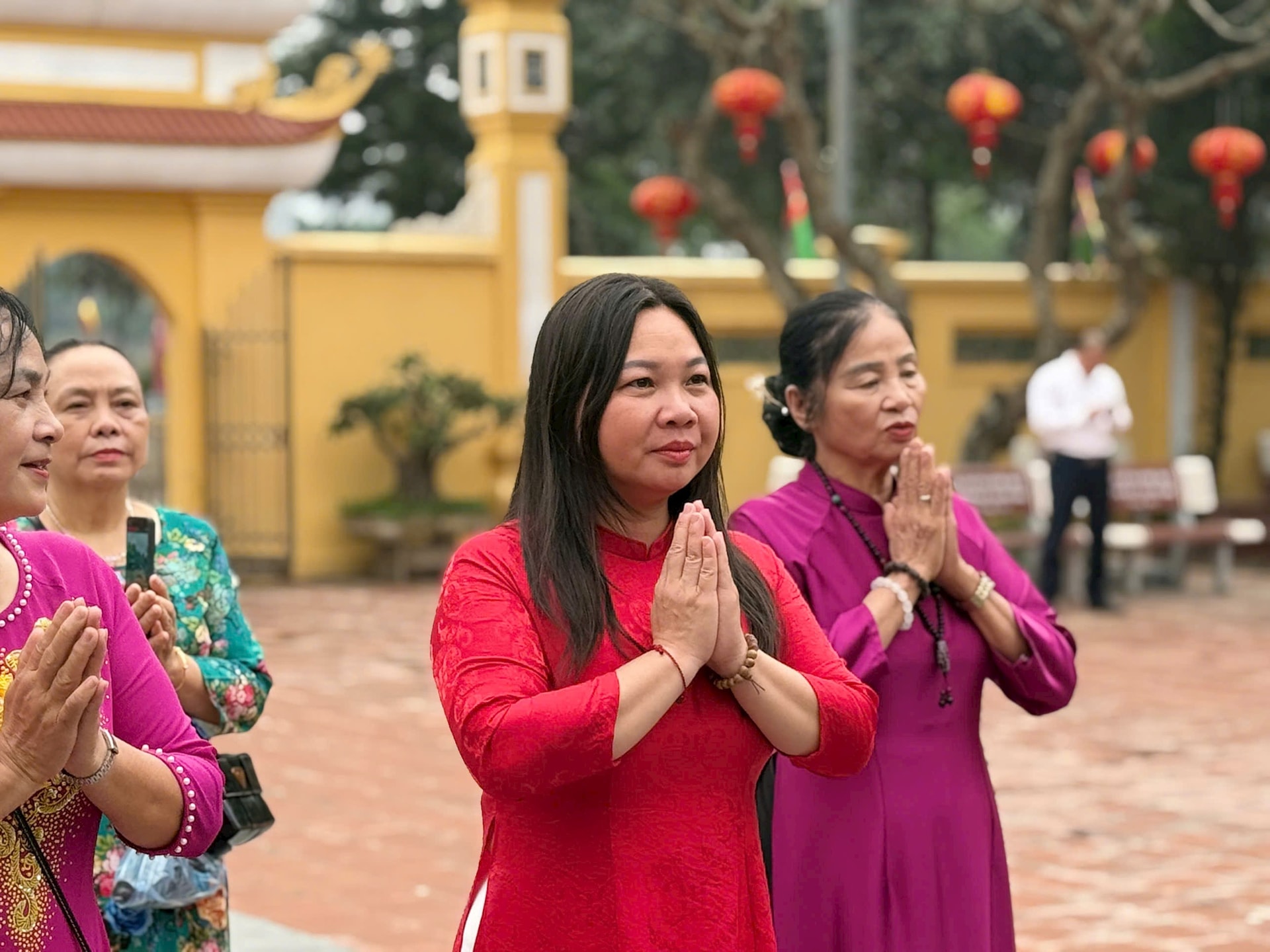 Con em quê hương Thanh Liệt dâng hương tưởng nhớ công lao Thành hoàng làng. Ảnh: Kim Xuyến.