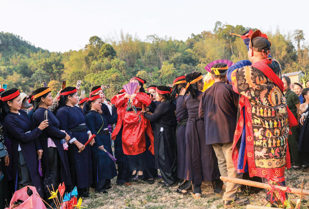 Nghi thức tiễn Nàng Hai về trời trong Lễ hội Nàng Hai Tiên Thành. Ảnh Thế Vĩnh