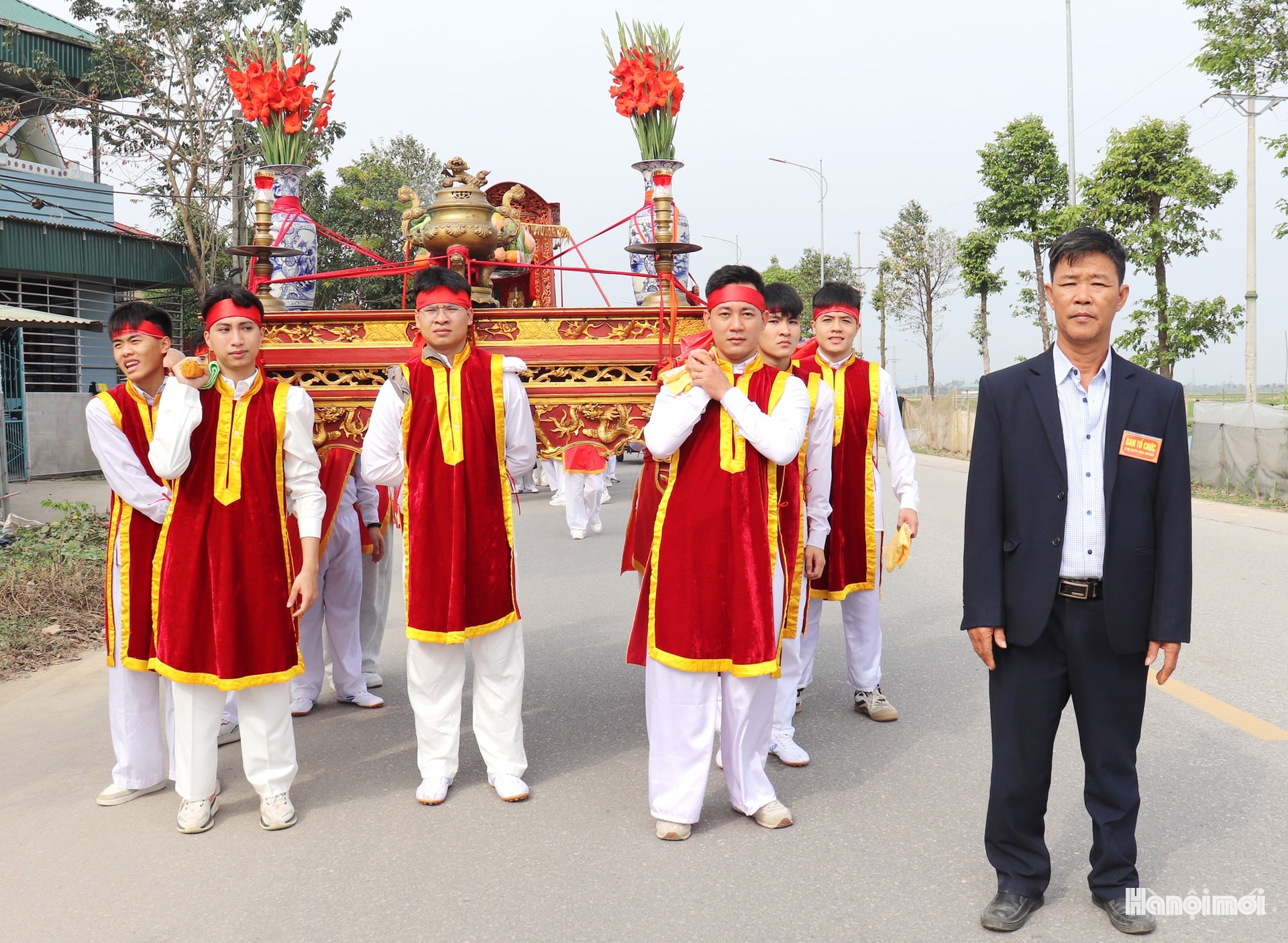 Không chỉ là hoạt động tín ngưỡng, lễ hội còn là dịp để gìn giữ, trao truyền những giá trị văn hóa dân gian qua nhiều thế hệ. Sự tham gia đông đảo của lớp trẻ trong đội hình rước, đội tế cho thấy sức sống bền bỉ của một lễ hội truyền thống nơi vùng quê. Ảnh: Tuấn Điệp