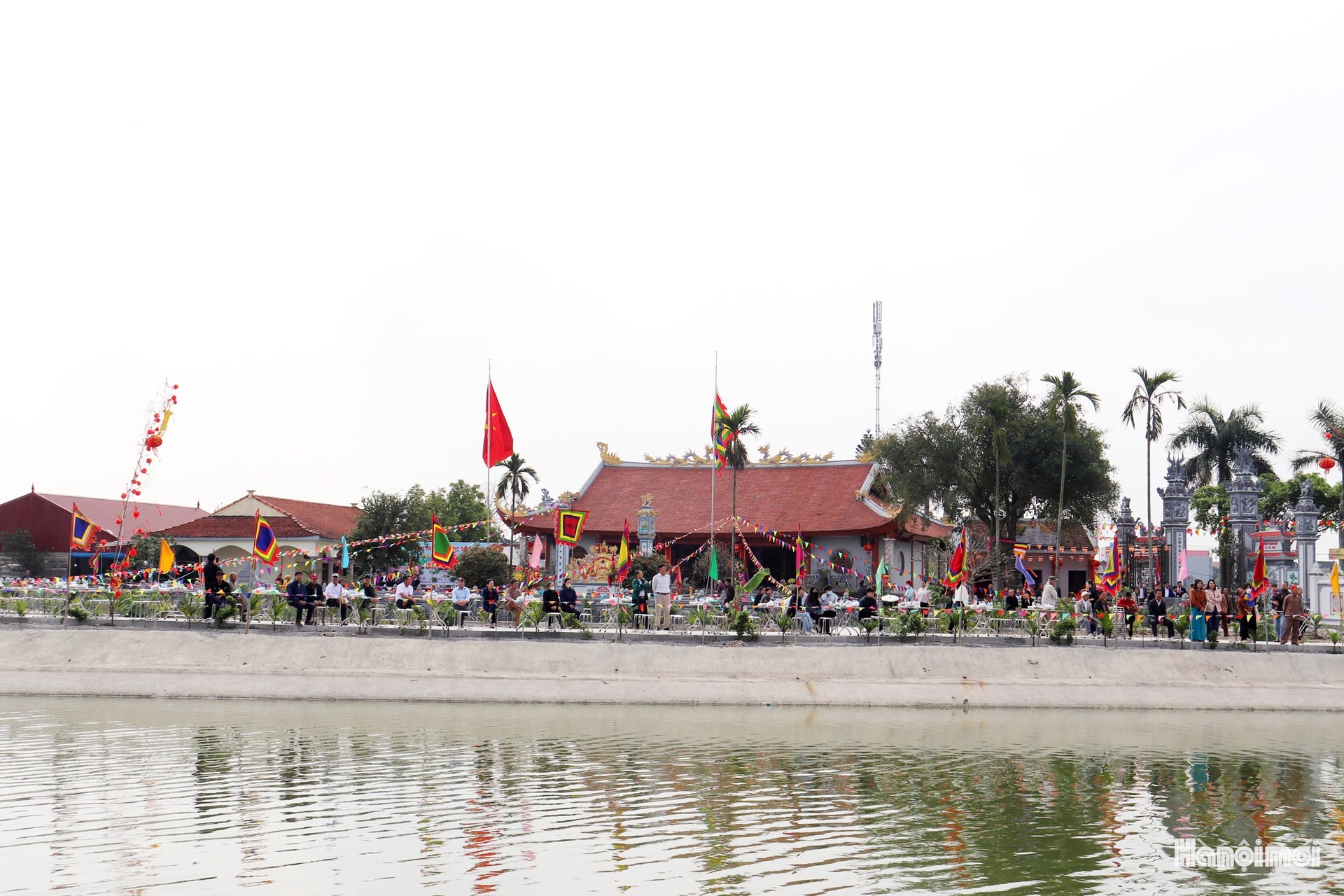 Ông Nguyễn Văn Bình - Ban tổ chức cho biết, lễ hội là dịp để ba thôn Động Phí, Nguyễn Xá và Ngọc Động cùng hội tụ, thể hiện tinh thần đoàn kết của nhân dân trong làng Ngọc Động, xã Vân Đình. Ảnh: Tuấn Điệp