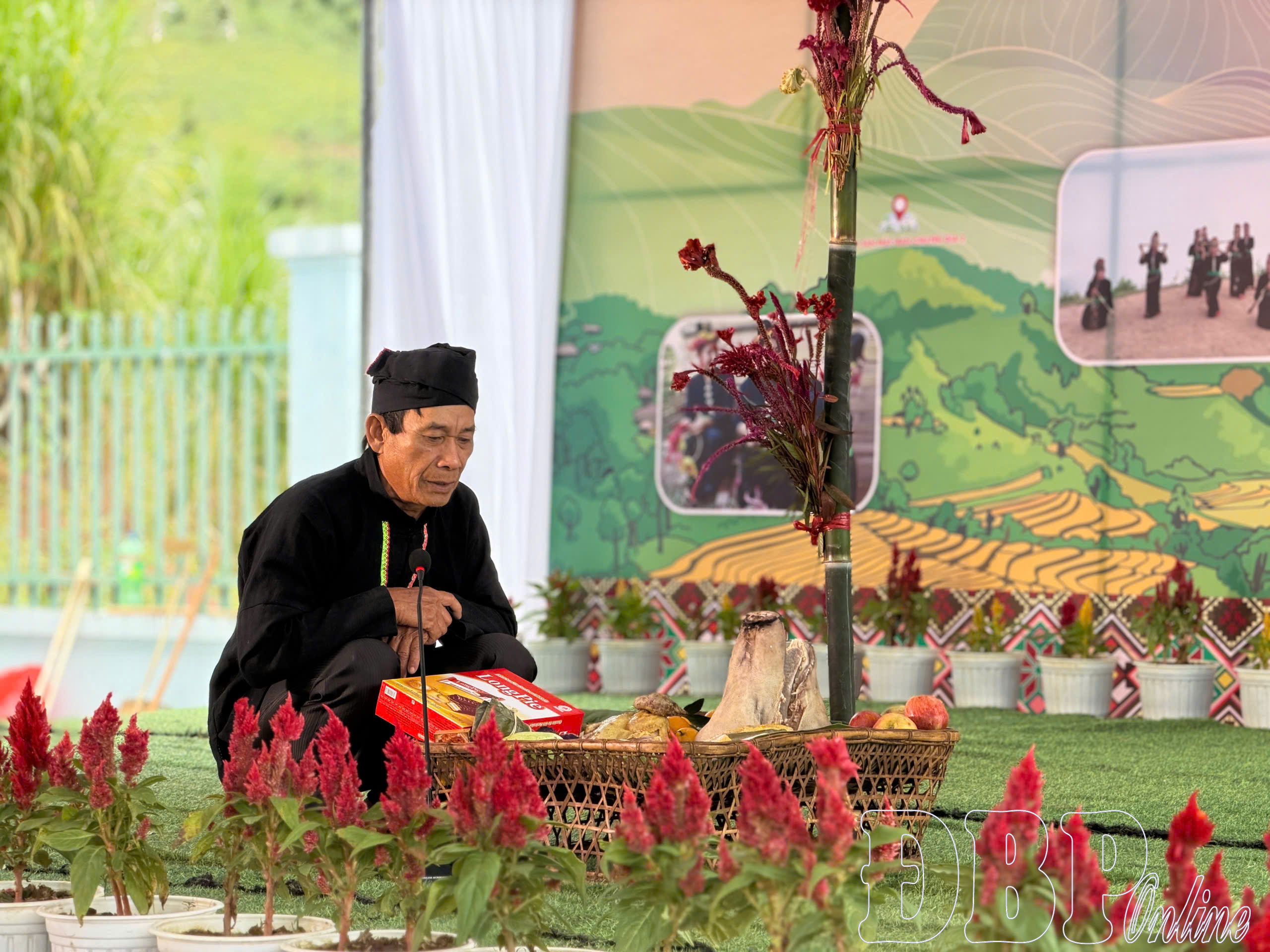 Nghệ nhân thực hiện nghi thức Lễ hội Tết hoa mào gà truyền thống dân tộc Cống bản Nậm Kè.