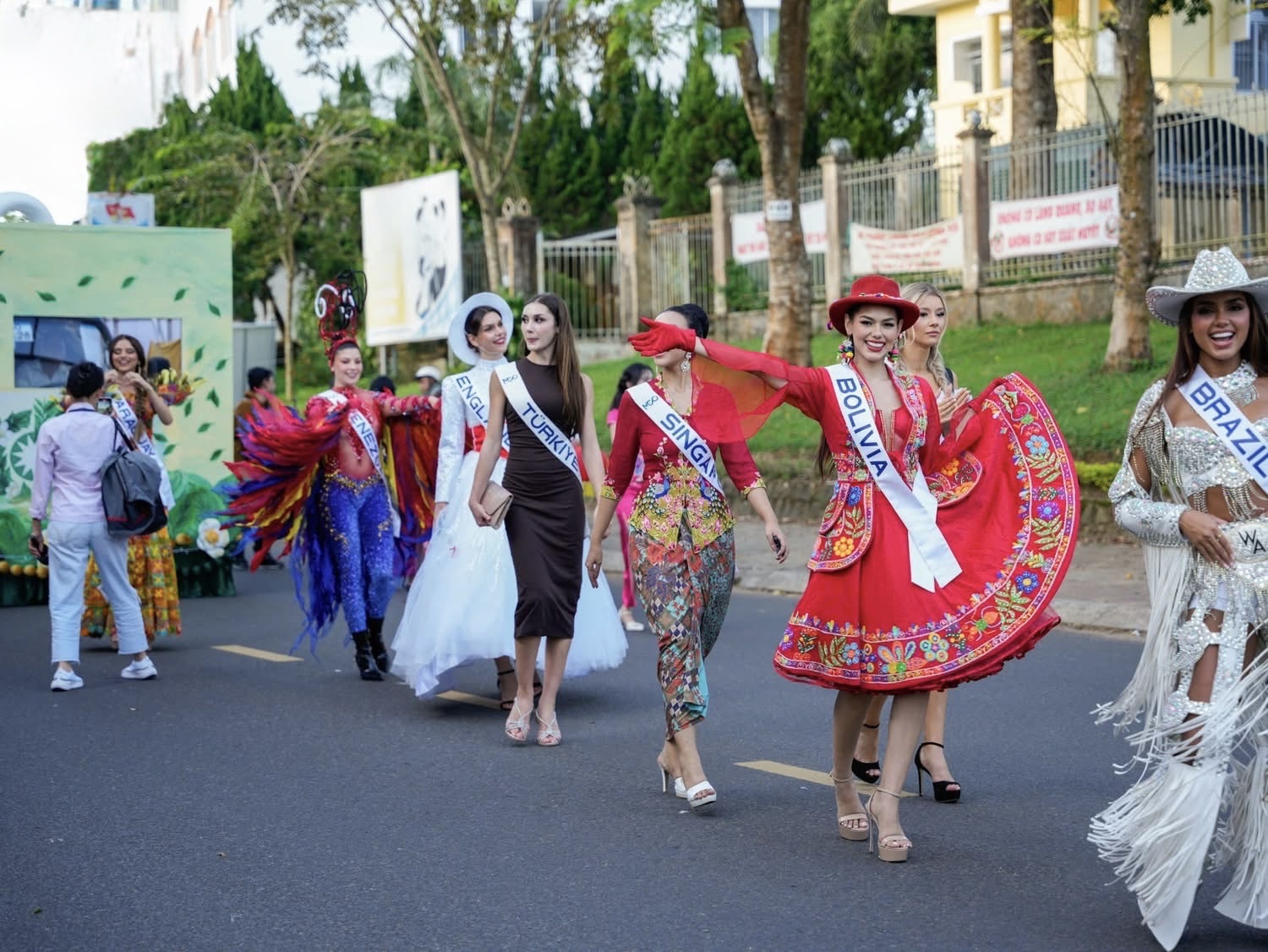 80 người đẹp đến từ các nước cùng tham gia diễu hành tôn vinh hình ảnh cây chè - Tea Carnival trên các tuyến đường trung tâm Đà Lạt.