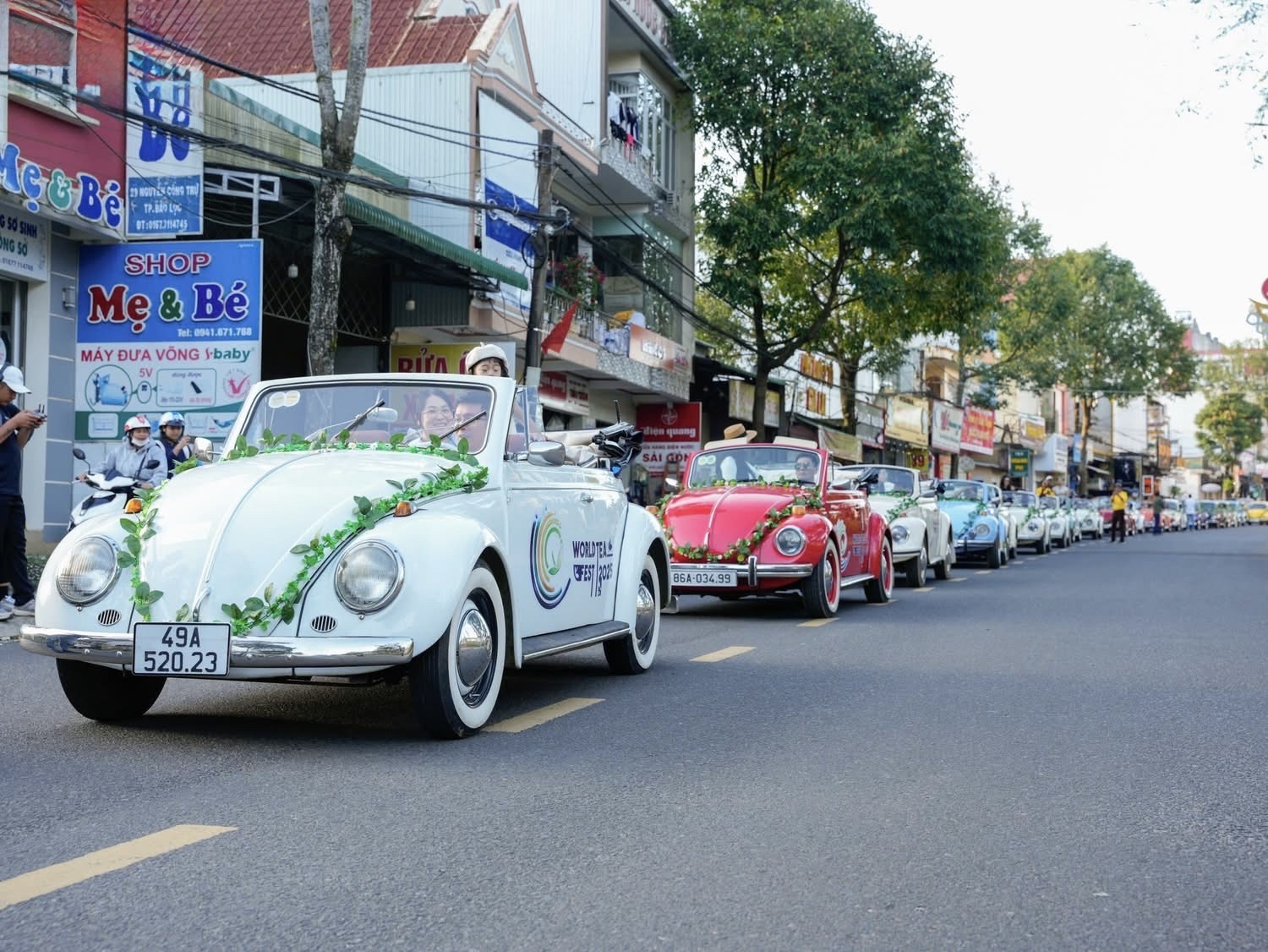 Đoàn xe cổ cũng tham gia diễu hành trên đường phố Đà Lạt trong khuôn khổ Lễ hội Trà quốc tế 2025.