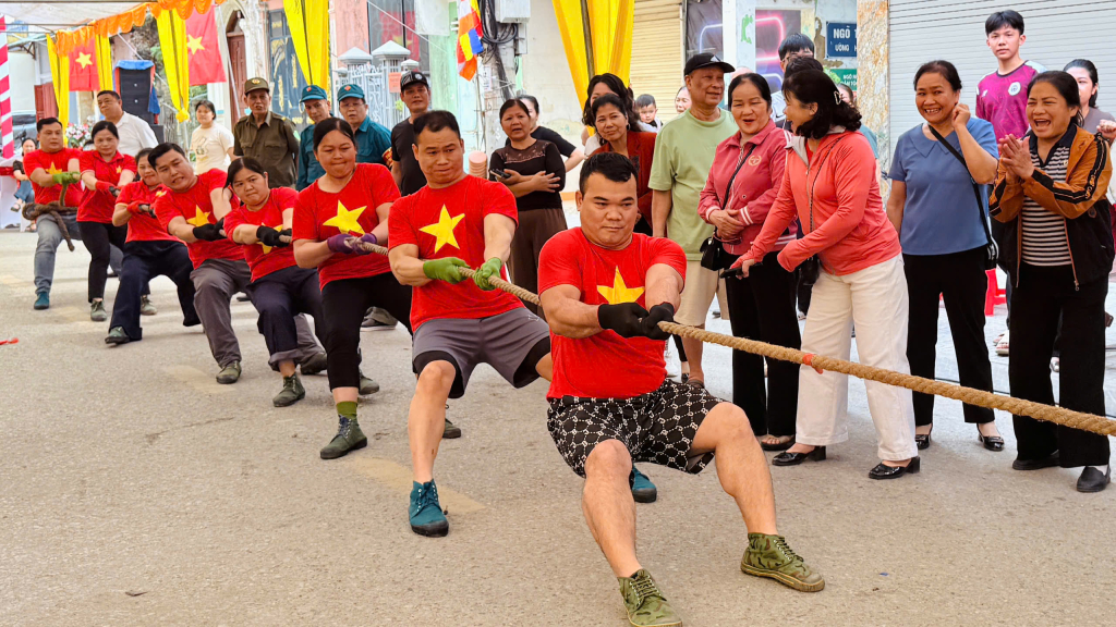 Thi kéo co giữa các tổ dân phố tại lễ hội.
