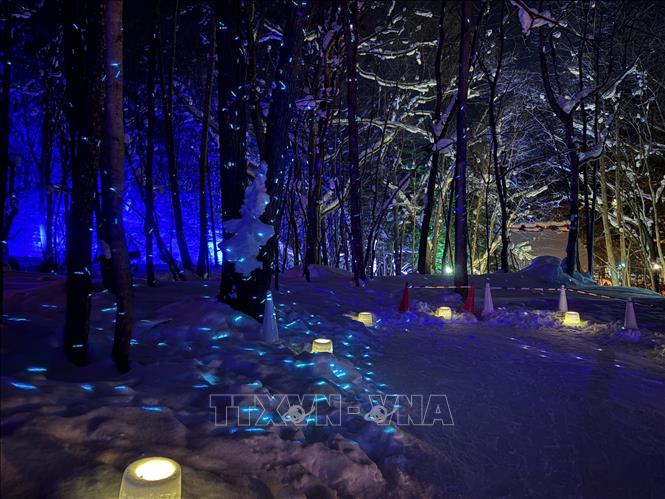 Khung cảnh lễ hội huyền ảo như trong cổ tích giữa vùng núi rừng tuyết trắng. Ảnh: Xuân Giao/PV TTXVN tại Nhật Bản