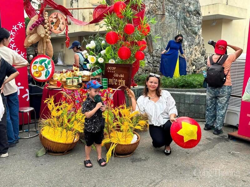 Không chỉ có đồ ăn, các gian hàng check-in, trưng bày sản phẩm văn hóa và thủ công mỹ nghệ cũng thu hút lượng lớn người tham quan và chụp ảnh lưu niệm