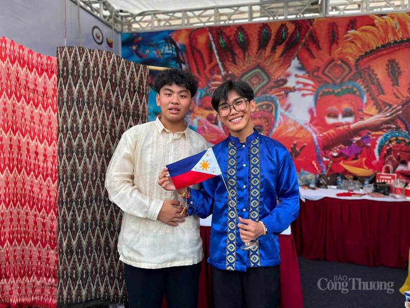 Sinh viên Philippines rạng rỡ trong trang phục truyền thống khi giới thiệu nét đẹp văn hóa nước mình tới bạn bè quốc tế.