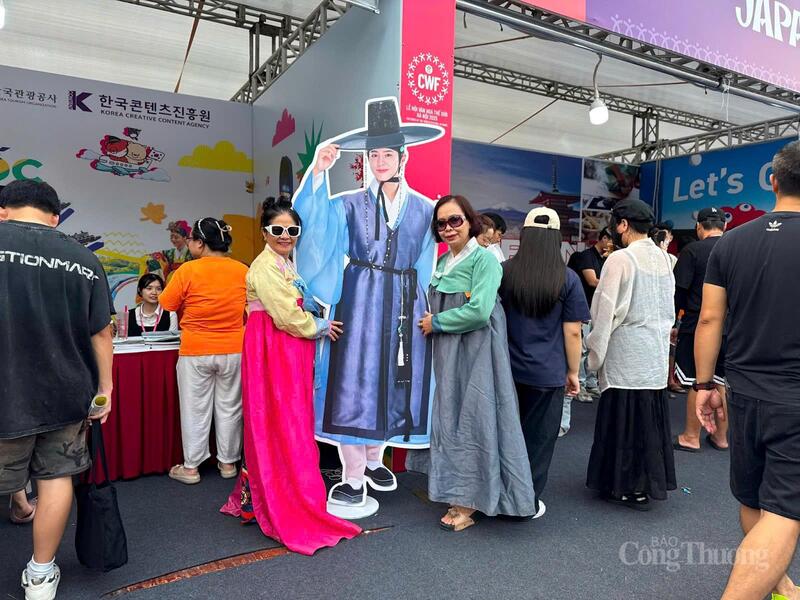 Nhiều gian hàng như Thái Lan, Hàn Quốc không chỉ phục vụ ẩm thực mà còn tổ chức cho thuê trang phục truyền thống và giúp du khách check-in ở khu vực lễ hội.