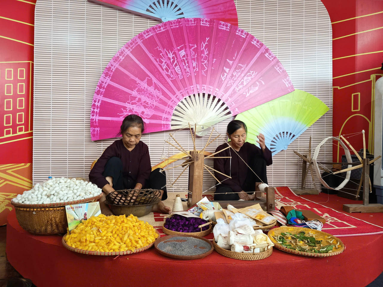 Nghệ nhân trình diễn nghề dệt thủ công. Ảnh: Phạm Sỹ.