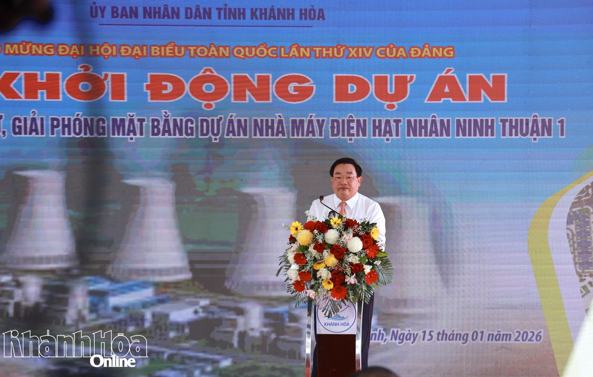 Sáng 15-1, tại xã Phước Dinh, UBND tỉnh Khánh Hòa tổ chức Lễ khởi động Dự án Di dân, tái định cư, giải phóng mặt bằng Nhà máy Điện hạt nhân Ninh Thuận 1. Đến dự buổi lễ có các đồng chí: Bùi Thanh Sơn - Ủy viên Trung ương Đảng, Phó Thủ tướng Chính phủ; Nguyễn Thanh Hải - Ủy viên Trung ương Đảng, Ủy viên Ủy ban Thường vụ Quốc hội, Chủ nhiệm Ủy ban Khoa học, Công nghệ và Môi trường; lãnh đạo các bộ, ngành Trung ương.