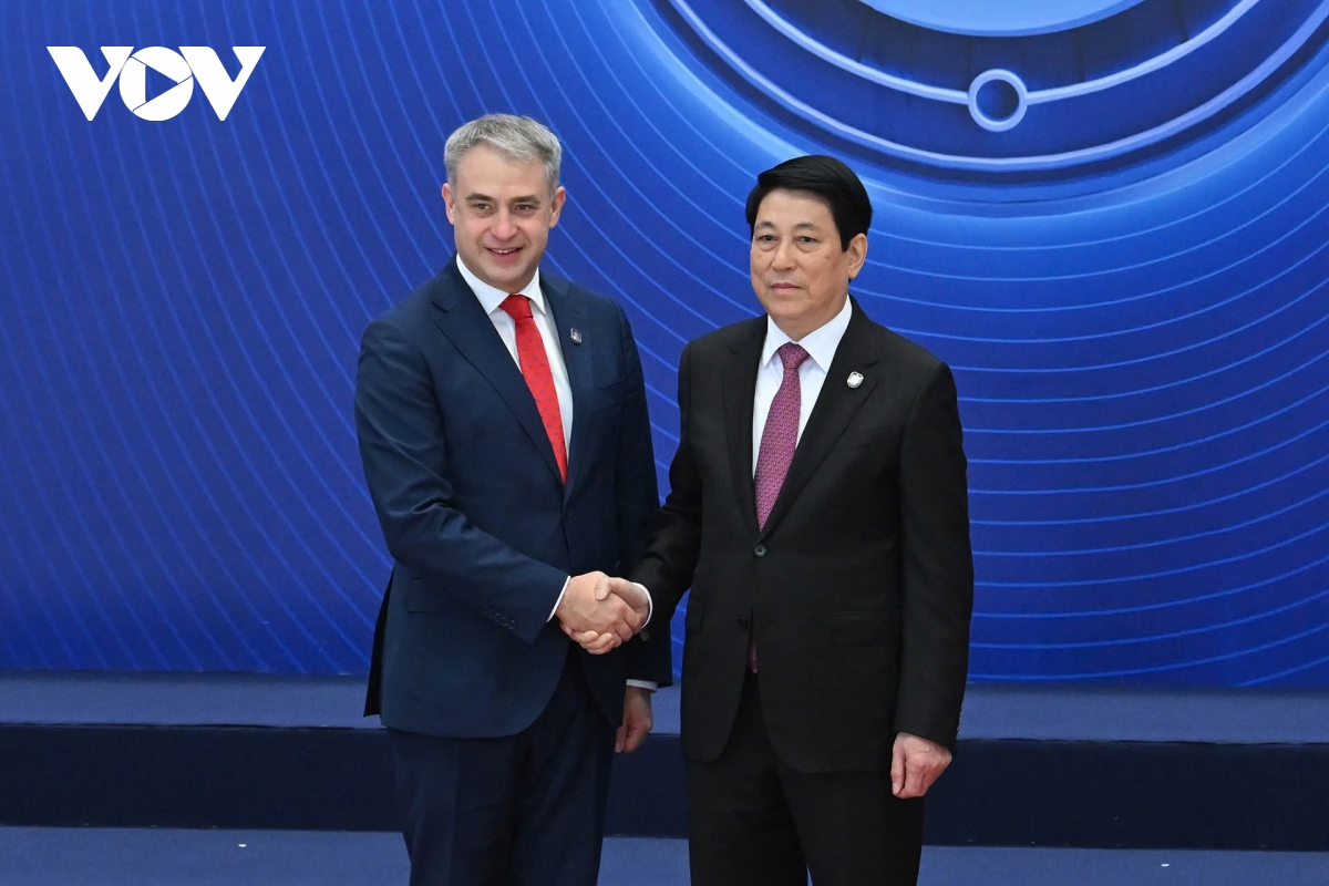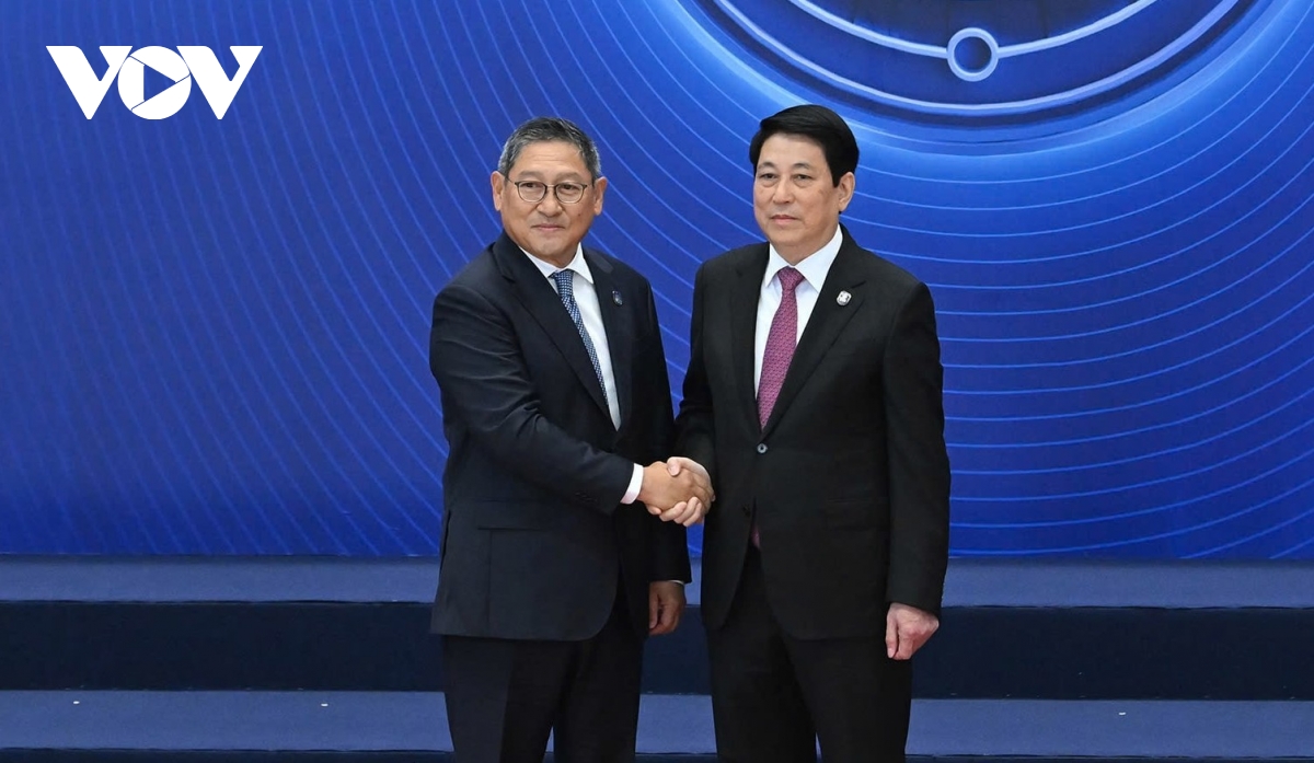Chủ tịch nước Lương Cường đón các đại biểu tham dự Lễ mở ký Công ước Hà Nội