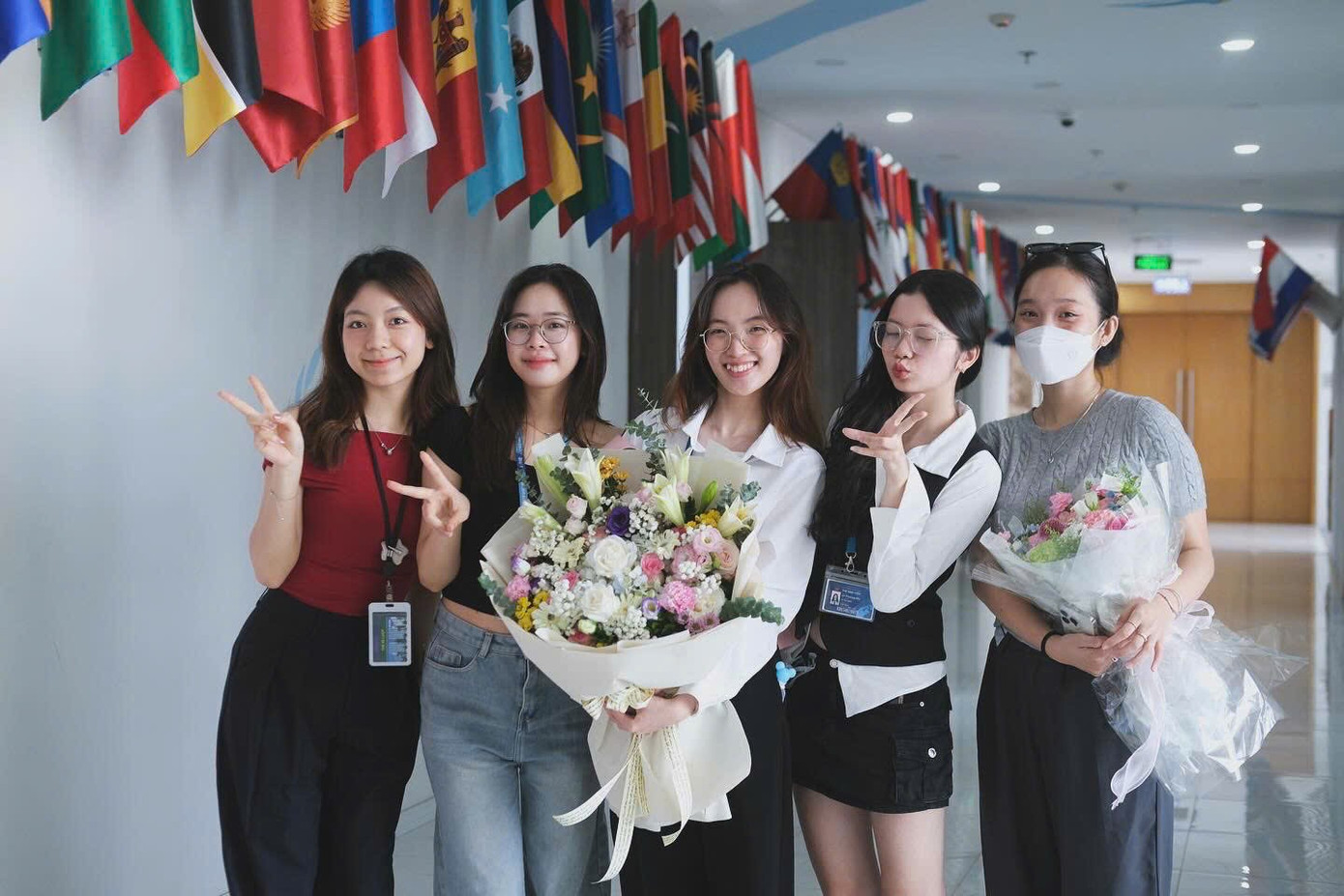 Nguyên Chi cùng những người bạn ở Học viện Ngoại giao.