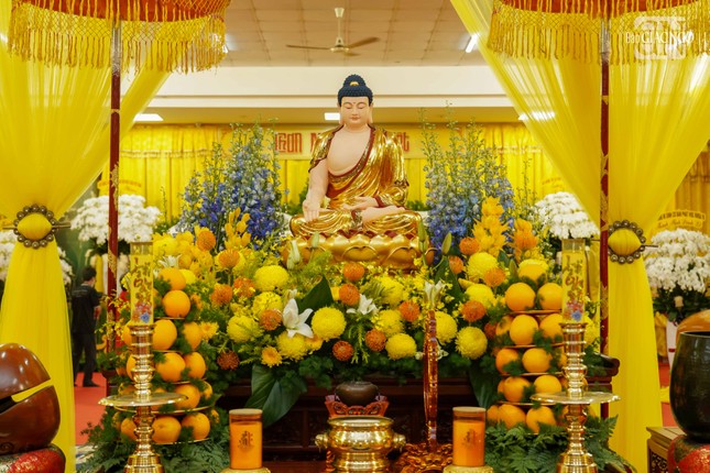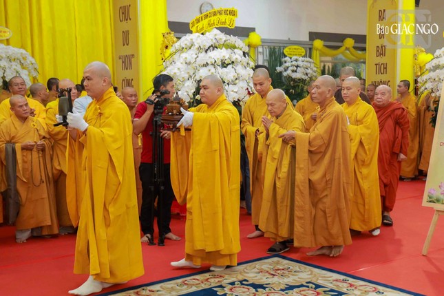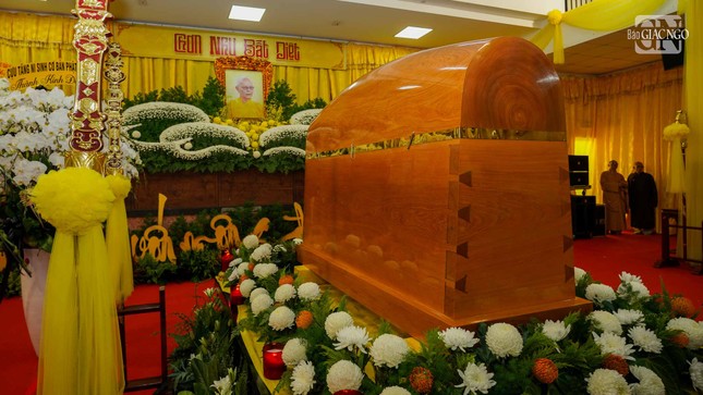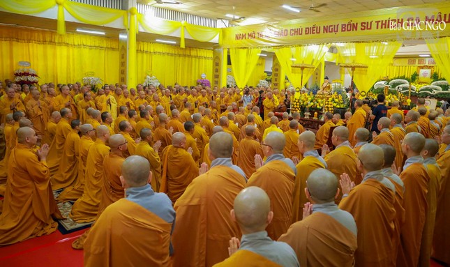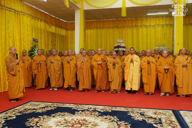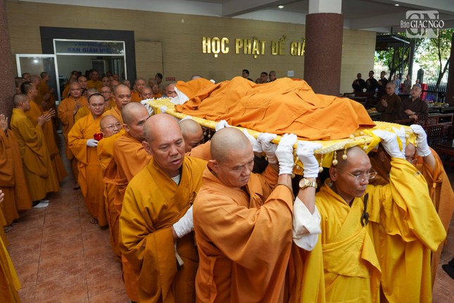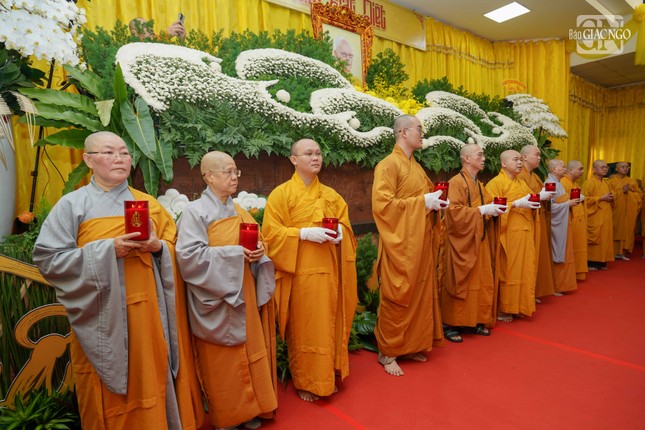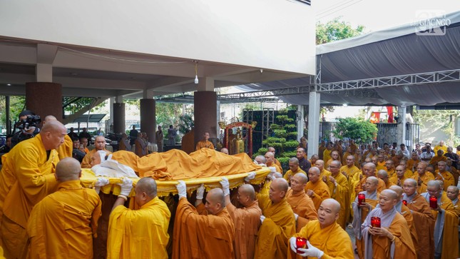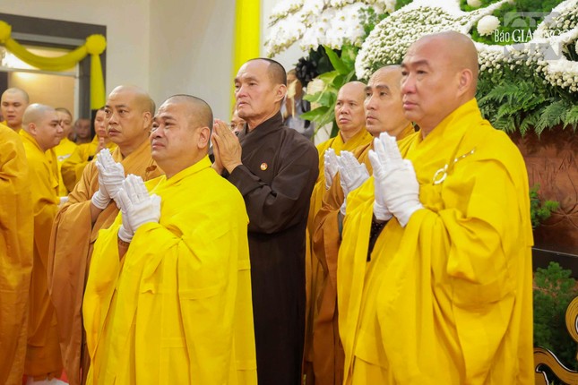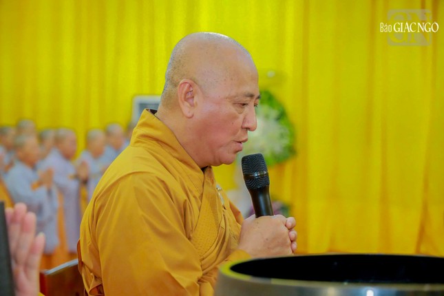 Hòa thượng Thích Huệ Thông, Phó Chủ tịch Hội đồng Trị sự, Trưởng ban Pháp chế Trung ương dẫn lễ thực hiện nghi thức nhập kim quan theo truyền thống thiền môn, trong âm thanh đồng niệm hồng danh Đức Phật Bổn Sư và chuông trống Bát-nhã trầm hùng.