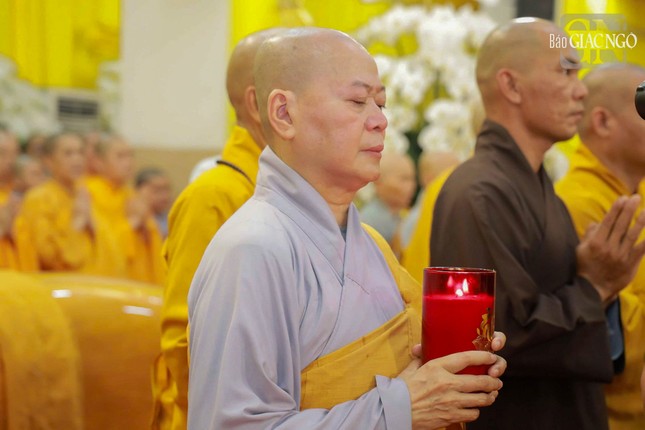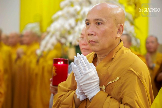 Hiện diện hộ niệm có Trưởng lão Hòa thượng Thích Thiện Nhơn, Phó Pháp chủ Hội đồng Chứng minh, Chủ tịch Hội đồng Trị sự; Trưởng lão Hòa thượng Thích Thiện Pháp, Ủy viên Thường trực Hội đồng Chứng minh, Phó Chủ tịch Thường trực Hội đồng Trị sự, Trưởng ban Tổ chức Lễ tang; chư vị Trưởng lão Thường trực, Thành viên Hội đồng Chứng minh; các vị giáo phẩm Hội đồng Trị sự, Ban Trị sự GHPGVN TP.HCM, chư Tăng Ni, Ban Giám hiệu, Tăng Ni sinh các khóa Cao đẳng, Trung cấp Phật học, cùng đông đảo Phật tử tham dự.
