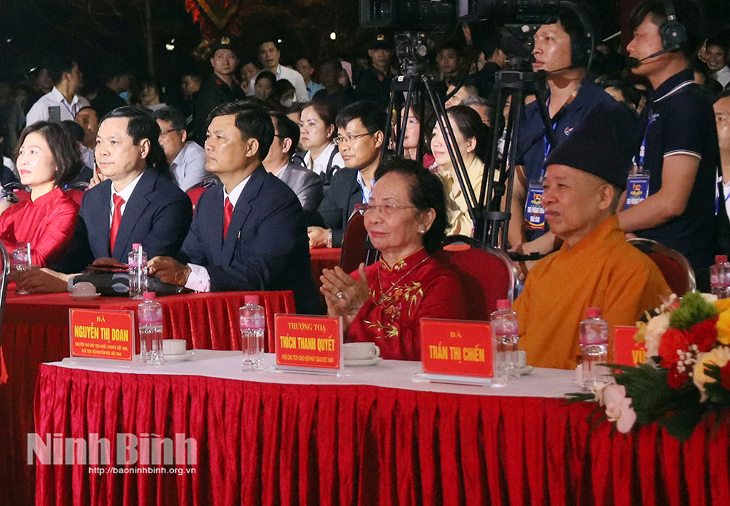 Tham dự Lễ có các đồng chí: Nguyễn Thị Doan, nguyên Ủy viên Trung ương Đảng, nguyên Phó Chủ tịch nước, Chủ tịch Hội Khuyến học Việt Nam; Đinh Thị Lụa, Phó Bí thư Thường trực Tỉnh ủy; Mai Văn Tuất, Phó Bí thư Tỉnh ủy, Chủ tịch Ủy ban MTTQ Việt Nam tỉnh; Nguyễn Minh Tiến, Ủy viên Ban Thường vụ Tỉnh ủy, Trưởng Ban Nội chính Tỉnh ủy; Nguyễn Anh Chức, Ủy viên Ban Thường vụ Tỉnh ủy, Phó Chủ tịch UBND tỉnh; Đặng Thanh Sơn, Ủy viên Ban Thường vụ Tỉnh ủy, Phó Chủ tịch UBND tỉnh; Lê Xuân Huy, Tỉnh ủy viên, Phó Chủ tịch HĐND tỉnh; Hòa thượng Thích Thanh Quyết, Phó Chủ tịch Hội đồng Trị sự Trung ương Giáo hội Phật giáo Việt Nam, Viện trưởng Học viện Phật giáo Việt Nam tại Hà Nội.