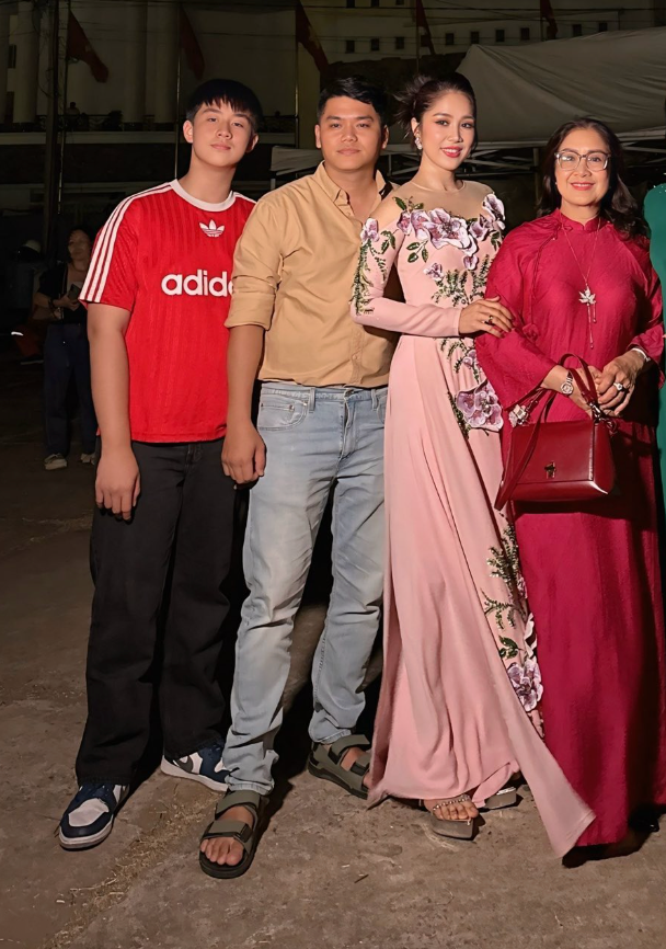 Lê Phương hạnh phúc khi được gia đình ủng hộ trong lịch trình công việc đặc biệt. Ảnh: FBNV
