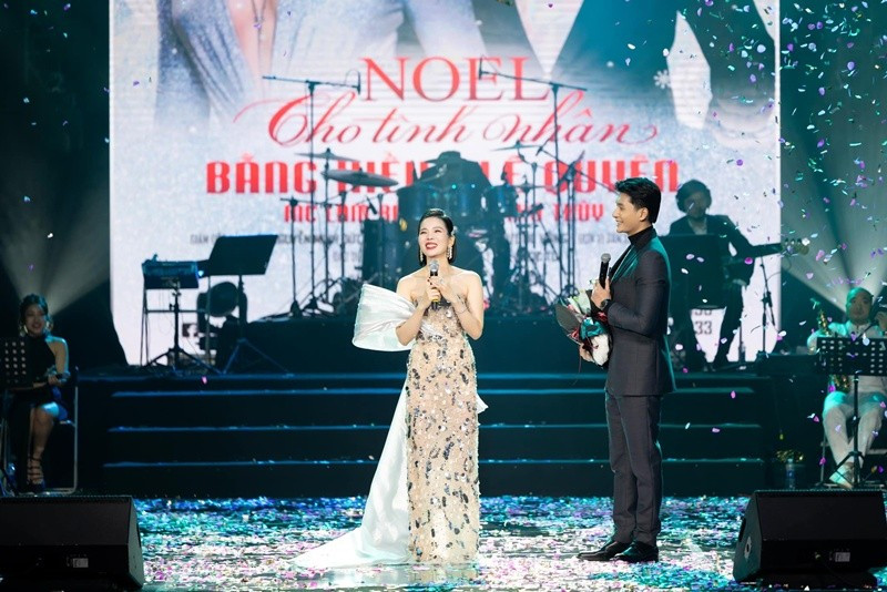 Lâm Bảo Châu làm MC trong một số chương trình có Lệ Quyên biểu diễn. Ảnh: FB Lâm Bảo Châu.