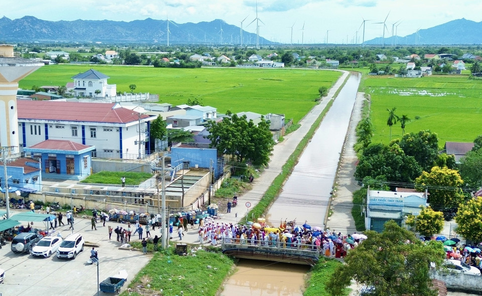 Đoàn đi đón y trang từ cộng đồng người Raglay ở xã Phước Hà. (Ảnh: Nhật Anh/TTXVN)