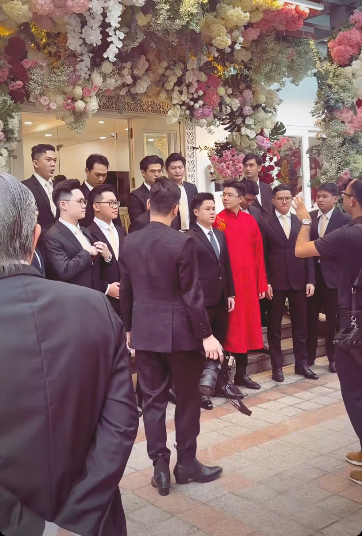 Theo những hình ảnh hiếm hoi được người thân chia sẻ, Phan Hoàng diện áo dài đỏ truyền thống, xuất hiện cùng dàn siêu xe trước cổng nhà. Từ cửa nhà đến không gian bên trong được trang trí lộng lẫy, phủ đầy hoa tươi sắc đỏ - hồng - trắng.