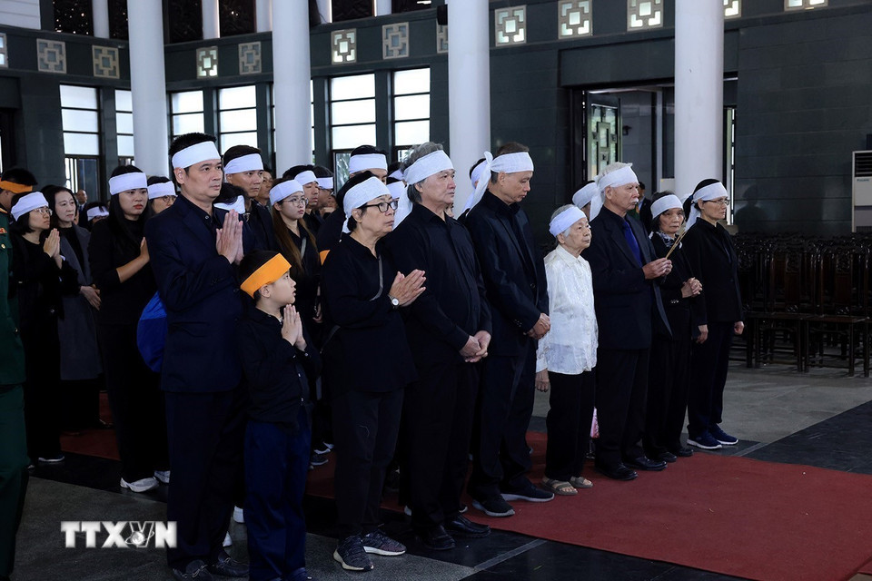 Gia đình nguyên Phó Chủ tịch Hội đồng Bộ trưởng Trần Phương vào viếng.(Ảnh: Tuấn Anh/TTXVN)