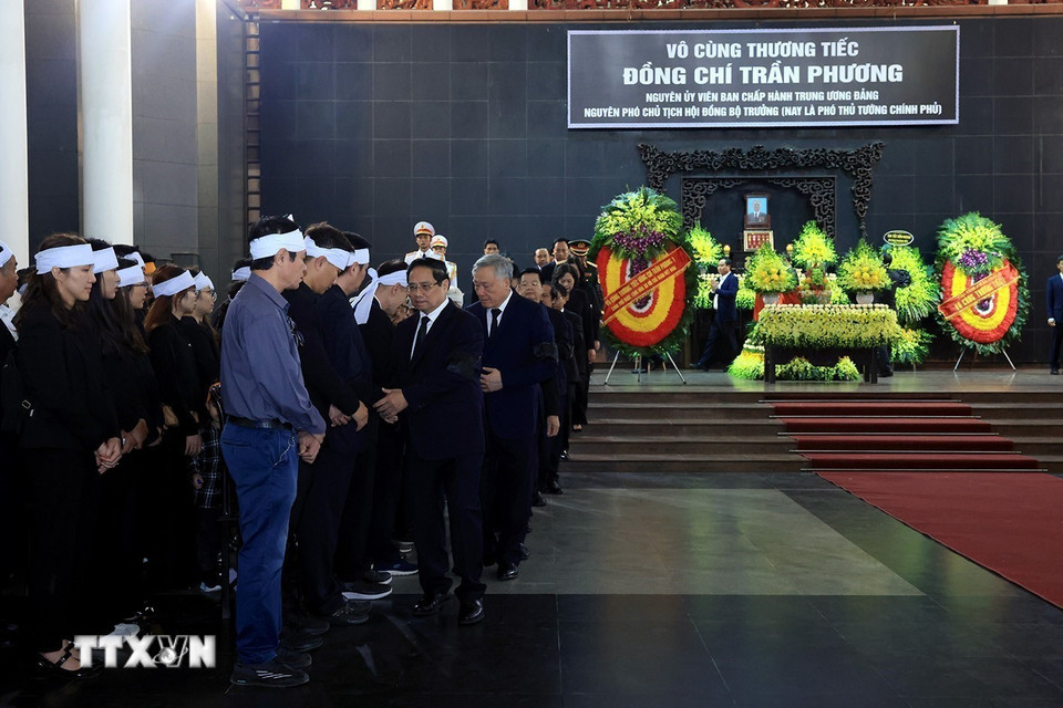 Gia đình nguyên Phó Chủ tịch Hội đồng Bộ trưởng Trần Phương vào viếng. (Ảnh: Tuấn Anh/TTXVN)