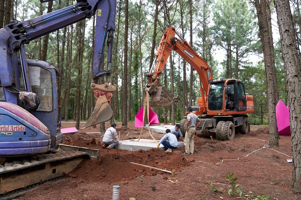 Tác phẩm Sen của Lê Thị Hiền được lắp đặt giữa rừng thông Đại Lải (Ảnh: Flamingo)