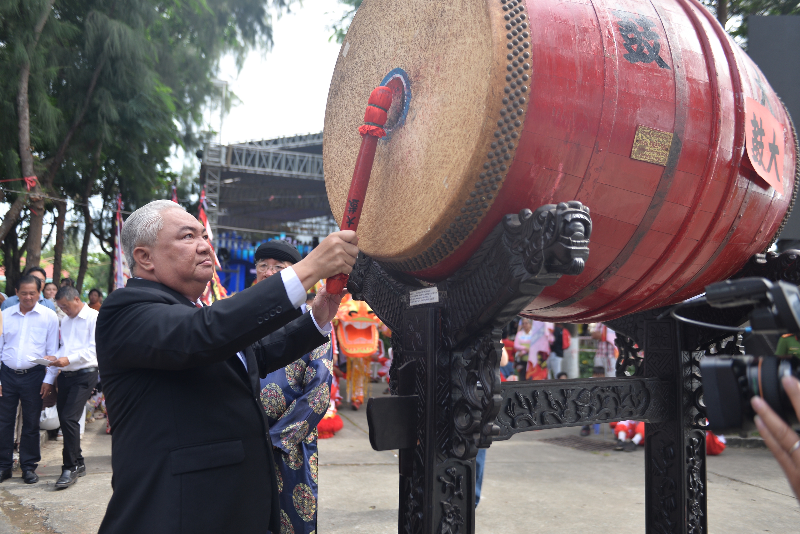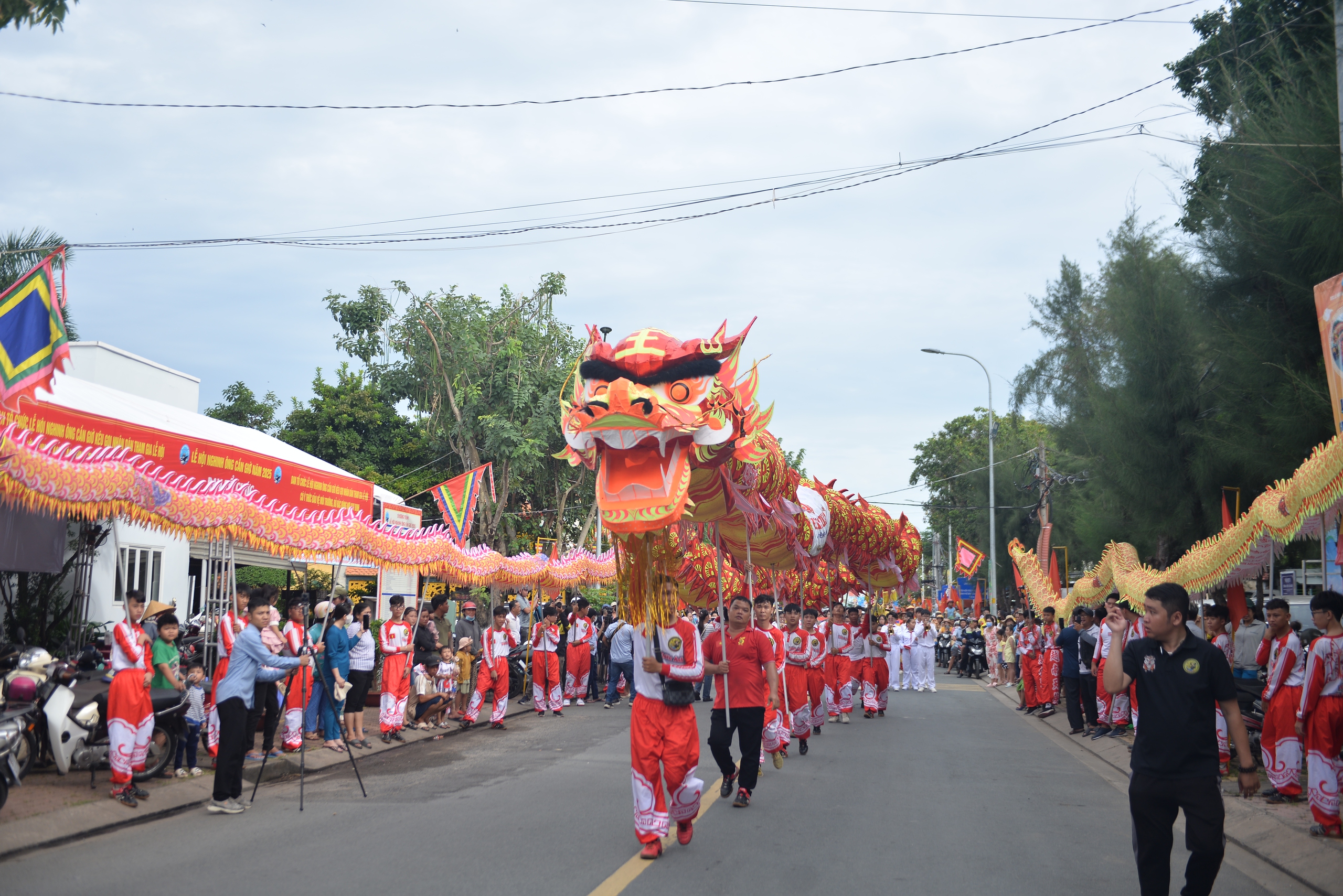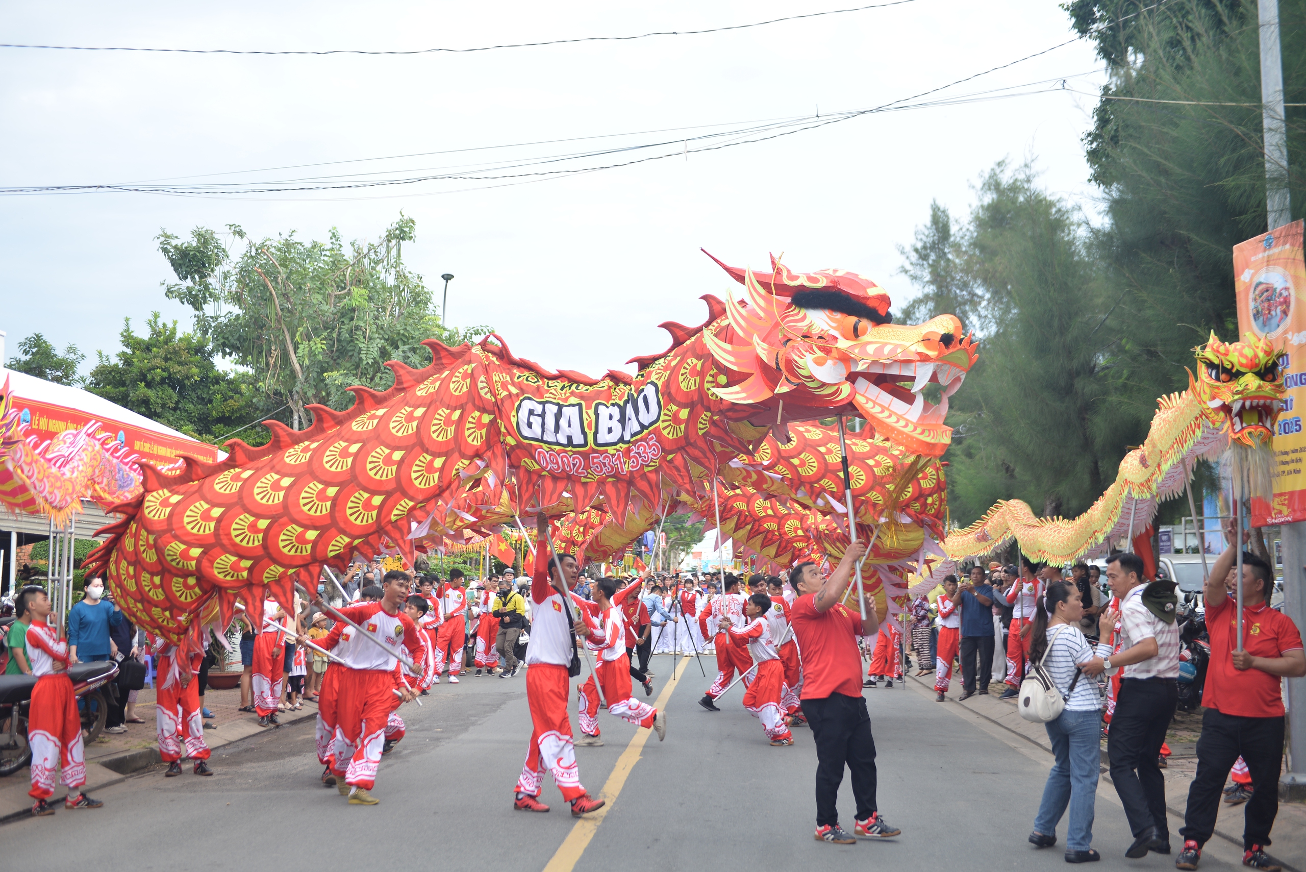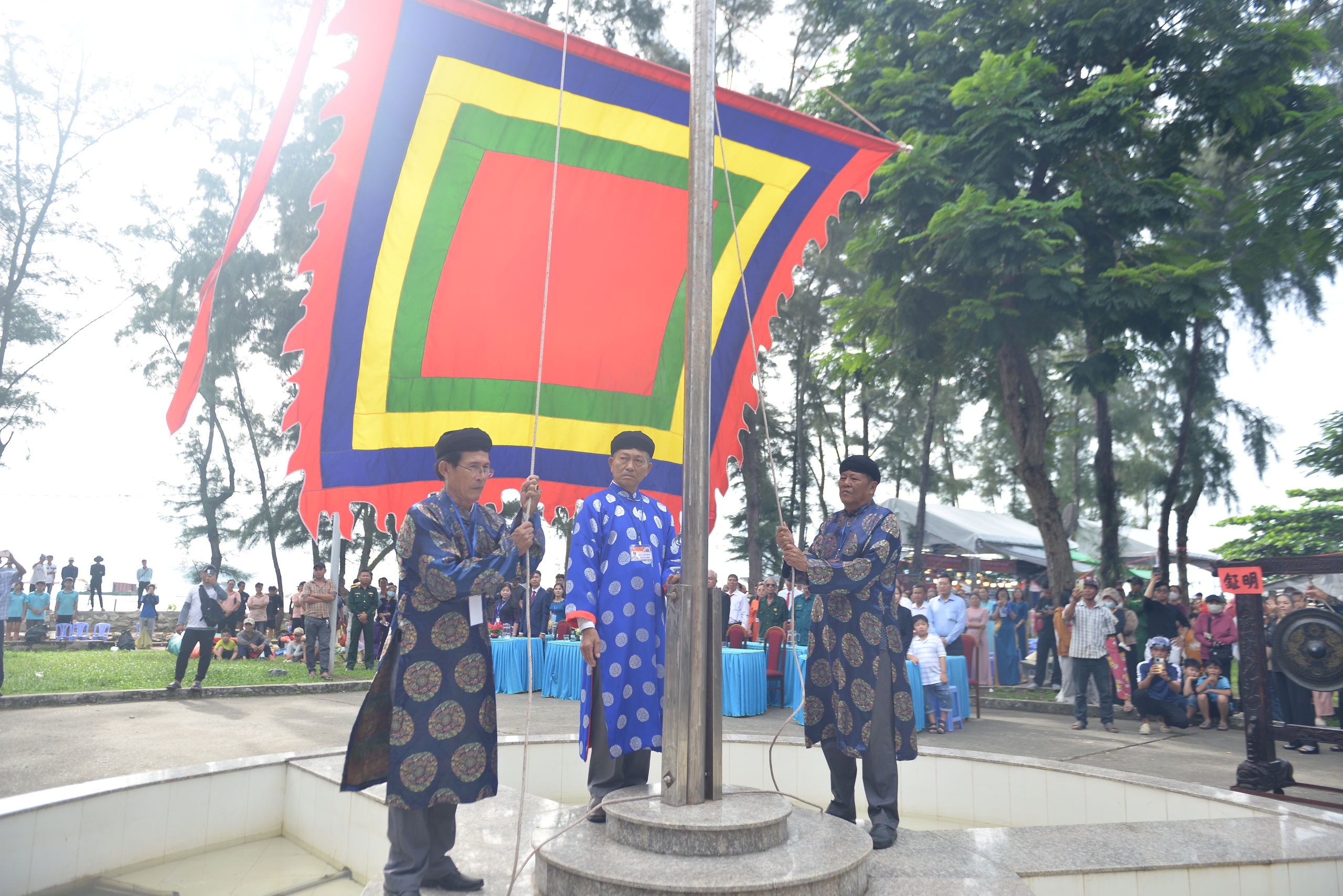 Sau đó, nghi thức Thượng Đại kỳ diễn ra trang trọng tại công viên Cần Thạnh. Đại kỳ được kéo lên trong tiếng trống rộn rã và sự chứng kiến trang nghiêm của đông đảo đại biểu, người dân và du khách. Cùng lúc, các tiết mục biểu diễn trống kèn thiếu nhi, Lân - Sư - Rồng sôi động như thổi bùng lên khí thế hân hoan, mở đầu cho chuỗi ngày lễ hội kéo dài.